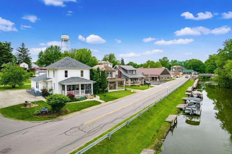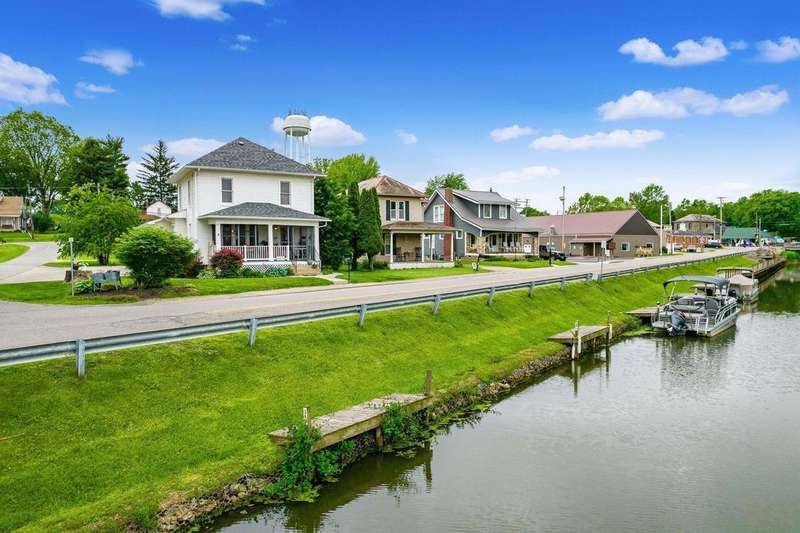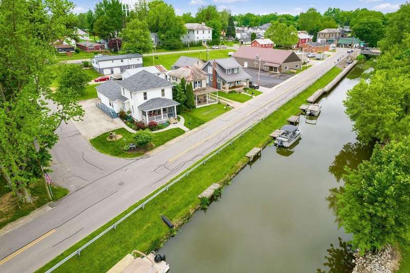 Outstanding two story home on the channel! Great location on Buckeye Lake to watch the boats go by up and down the channel, cruise down on your pontoon or boat from your own private dock to Weldons Ice Cream, such a fun area! One of the larger homes on the channel with screened in front porch, attached two car garage and big concrete driveway and pad for extra boat and car storage, 1st floor primary bedroom with full bath featuring jacuzzi soaking tub, 1st floor laundry with built ins, open floor plan with big kitchen with island, formal dining and living room, family room and eating space off of kitchen, partial finished third story for additional storage, big & clean full basement, newer three dimensional roof, well cared for home in nice condition.