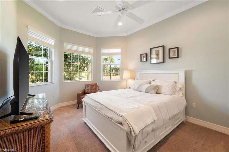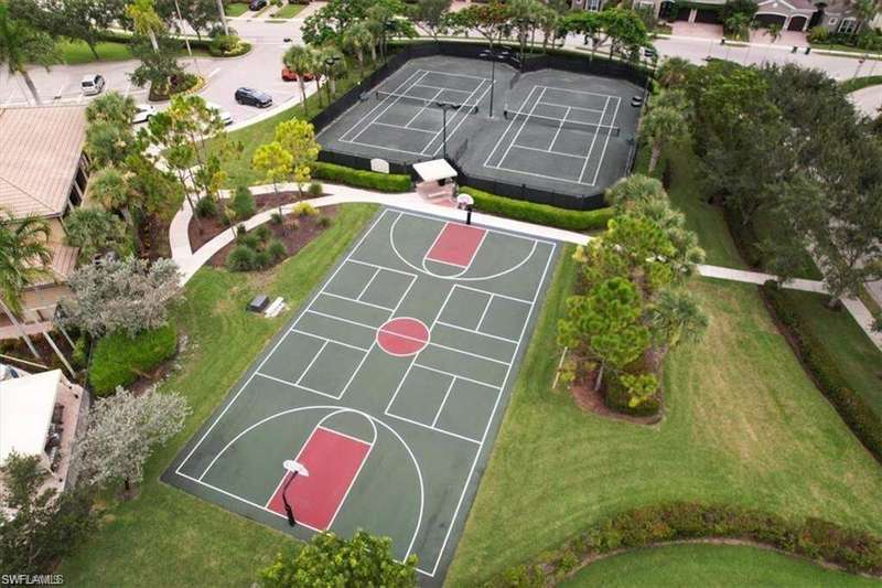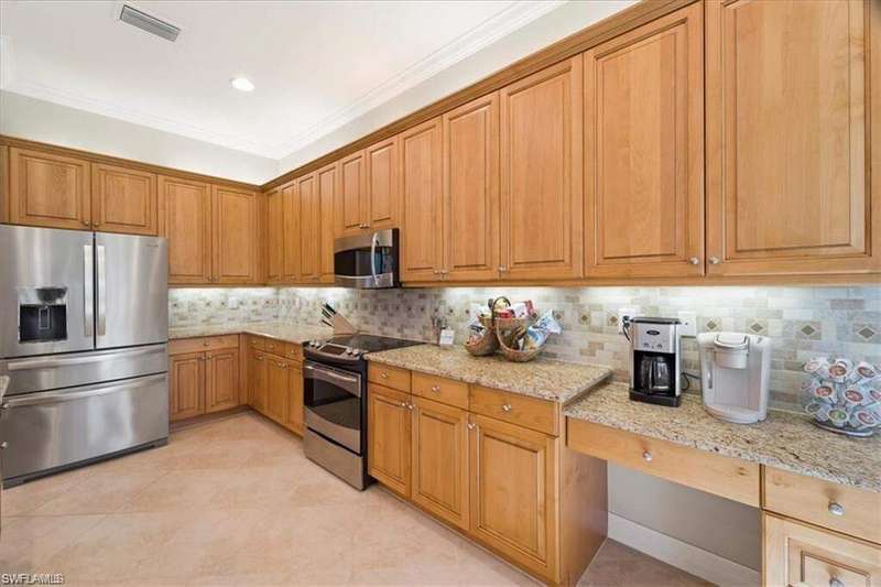 This beautiful home is available for November & December of 2025! Also, available for May through the rest of 2026! Spare no detail with this 3 + Den, 3 Bathroom in the highly sought after Marbella Lakes. Beautiful tile and wallpaper all throughout. Enjoy your morning coffee in the south facing screened lanai. The home is directly across the street from all the amenities. Marbella Lakes is a manned gated community that features indoor and outdoor basketball courts, indoor and outdoor pickleball courts, two Har-Tru tennis courts, gym, resort-style pool, children's pool and play area.