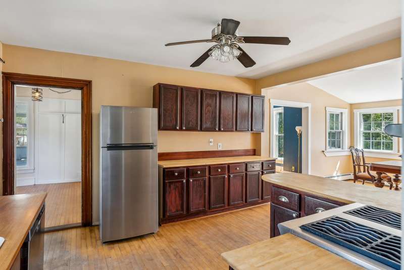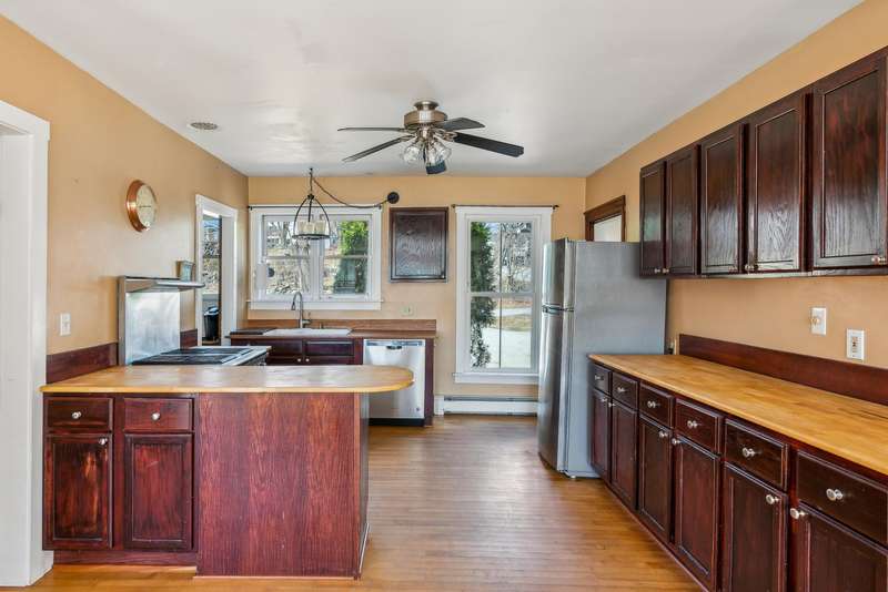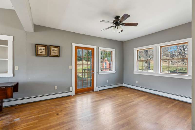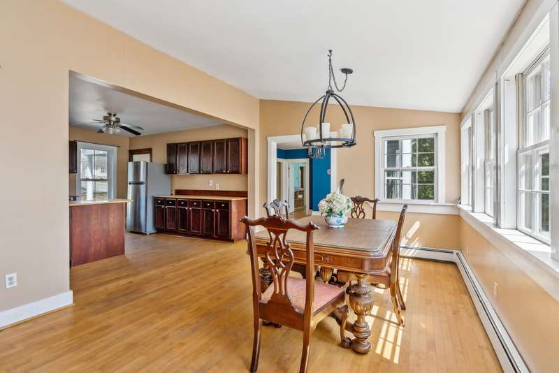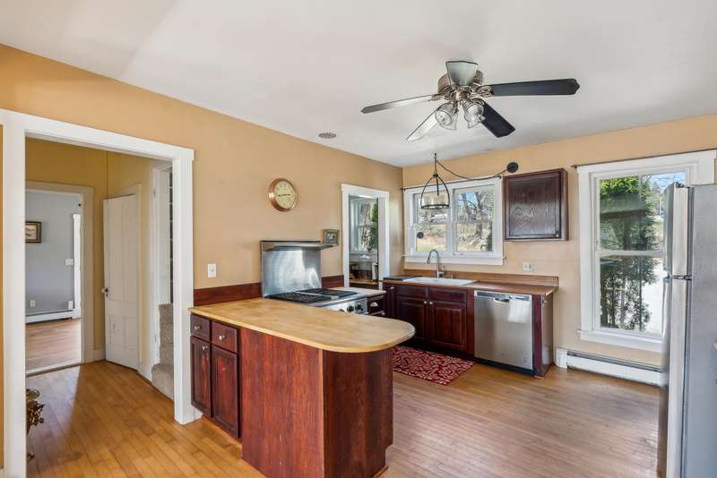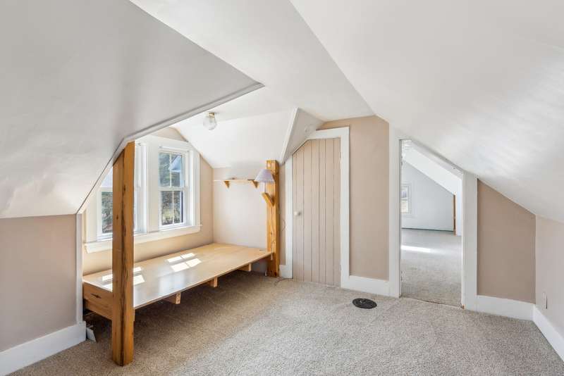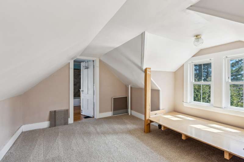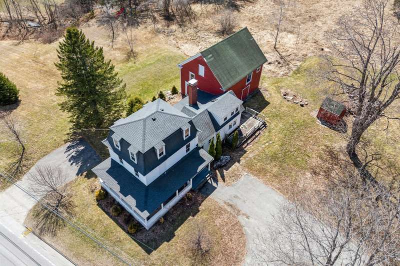 This 1891 farmhouse is nestled on 11 acres just minutes from Maranacook Lake and downtown Winthrop. Featuring four spacious bedrooms and two full bathrooms, this home blends historic character with modern comfort. The main floor boasts an open, flowing layout ideal for both everyday living and entertaining, with versatile spaces perfect for a home office, library, or den. Natural light pours in through large windows, and the classic wrap-around porch invites you to relax and soak in the surroundings. There's a first-floor bedroom and bathroom and upstairs, you'll find Three-four generously sized bedrooms. The third floor features an unfinished room beneath a distinctive mansard-style roof, wrapped in 360° windows offering views of Maranacook Lake. Whether imagined as an inspiring art studio, luxurious primary suite, playful retreat, or tranquil office, this space is brimming with potential. A classic red barn with multiple levels adds even more value—offering incredible storage, a possible rec room, or creative workshop space. With seasonal lake views from every floor, plenty of room to roam, and easy access to both natural beauty and town amenities, this property is a rare opportunity to own a piece of Maine's charm and history.
