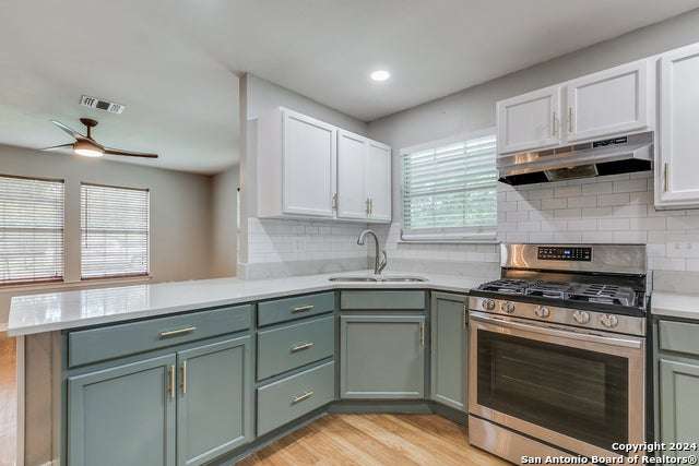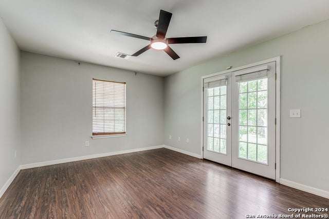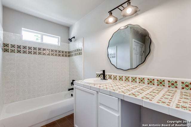 Enjoy downtown living and views of the tower while still being tucked away on one of the most quiet streets! The home's thoughtful planned layout boasts two living spaces and three bedrooms each separately located in the home to take full advantage of privacy. On the first floor you'll enjoy an open concept kitchen, with loads of cabinet storage and an adjacent dining space. Beyond the kitchen you'll find a large laundry room and primary bed with large walk in closet and French doors. The primary bathroom has been fully remodeled with new tile, countertops and serene shades of green, gray, and brass finishes. Off the living space there is a lovely patio large patios to enjoy outdoor living and the added bonus of looking out onto a neighborhood park. Upstairs you'll find the second living space perfect for use as an office or bonus TV/lounge area. The two bedrooms are separate from each other but enjoy use of the updated bathroom that is decorated with a San Antonio flare! Don't miss out on the perfectly remodeled SA beauty!