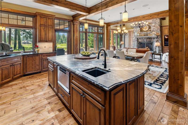 Experience elevated mountain living in this stunning Suncadia home w/a magnificent view of Peoh Point & Rope Rider Golf Course (5&6). This beautifully crafted home offers the perfect blend of luxury, comfort, & functionality. The great room impresses w/soaring vaulted ceilings, a striking stone fireplace & rich Shamrock Hickory hardwood flooring. The spacious main-floor primary ensuite feat. an incredible custom shower, elegant clawfoot soaking tub & premium finishes. Culinary enthusiasts will love the luxury kitchen, feat. Wolf and Sub-Zero appliances, sleek cabinetry & generous workspace. Finally, Step outside to an entertainer’s paradise, w/expansive back patio & panoramic views that showcase the best of resort living.