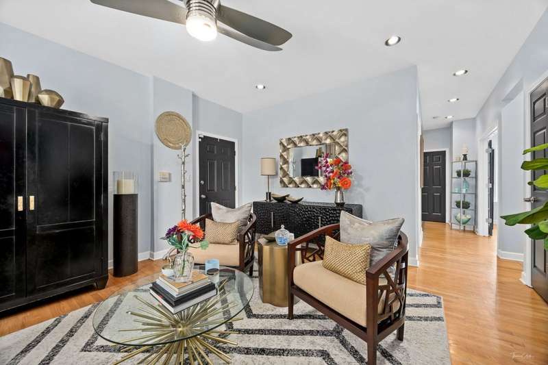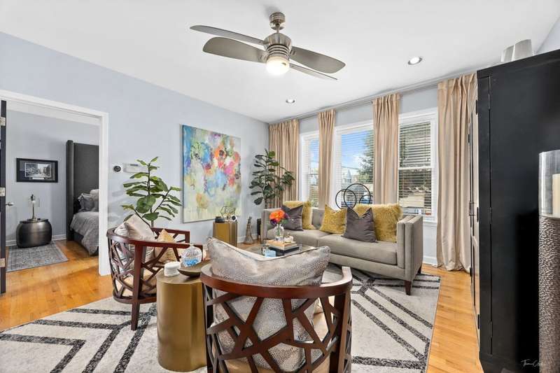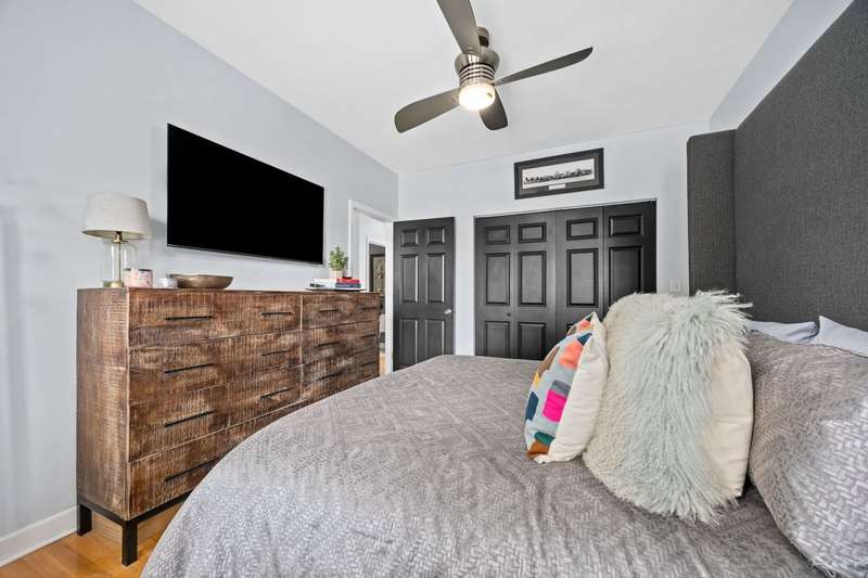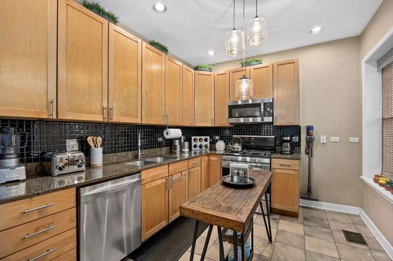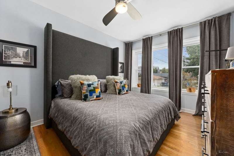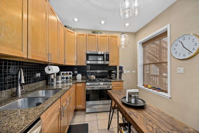 Welcome to Bowmanville, a quaint neighborhood tucked just west of Andersonville and north of Lincoln Square, where this immaculate corner duplex-down offers style, comfort, and convenience. With nearly 1,500 sq ft of living space, the home features two spacious living rooms, two bedrooms, and two full baths. The main level highlights include a sun-filled living room, a separate dining room, and a large eat-in kitchen with granite countertops, stainless steel appliances, and ample cabinetry. Beautiful hardwood floors flow throughout the main level, enhancing the open and airy feel. The lower level offers a versatile family room, ideal for entertaining or relaxing, plus a second bedroom, full bath, and a walk-in closet. Outdoor amenities include a private deck and assigned parking space (included in price), with plenty of easy street parking for guests. Extra storage space is also provided. Enjoy being just steps to the Ravenswood Metra, Mariano's, LA Fitness, shops and restaurants.