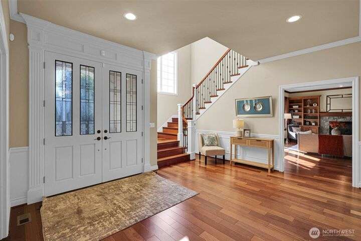 Perfect combination of contemporary architecture and classic interior finish, built by renowned William Buchan Homes, this beautiful home is located on a quiet cul-de-sac in Bellevue Lakemont neighborhood. Main floor features spacious family room, huge kitchen, living room, dining area and an office. Upstairs with 4 bedrooms and bonus room. Primary bedroom with fireplace and sitting area. Gleaming Brazilian Cherry floor, Butler's pantry, Mosaic windows, Crown molding, Wainscoting, mud room off of garage, outdoor fireplace & BBQ area, Central AC. Top rated schools, Cougar Ridge Elementary is within walking distance. Playground is right across from the house. Minutes to Lakemont shopping plaza, gas station. Easy access to I-90.