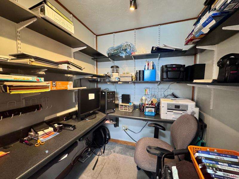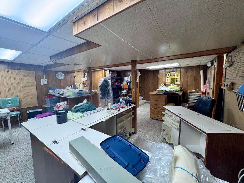 Discover a property that offers endless possibilities--whether you're seeking a cozy home, a creative retreat, or a business-friendly space, this one checks all the boxes. Formerly a cherished primary residence, it also has zoning that welcomes commercial use, making it ideal for entrepreneurs or hobbyists alike. Step into a beautifully landscaped yard bursting with vibrant flower beds and a bubbling water feature that sets a welcoming tone from the moment you arrive. Two detached garages provide ample space and flexibility- Main Garage: 24x32- Second garage: 20x24, heated and insulated, currently used as a crafting studio. Inside, the main floor features the primary bedroom and convenient laundry area. The kitchen offers ample counter space, generous cabinetry, and flows into a bright dining area. Upstairs, you'll find two additional bedrooms and a full bathroom--ideal for family or guests. The basement offers flexible space for creative projects and includes another full bathroom.