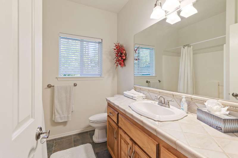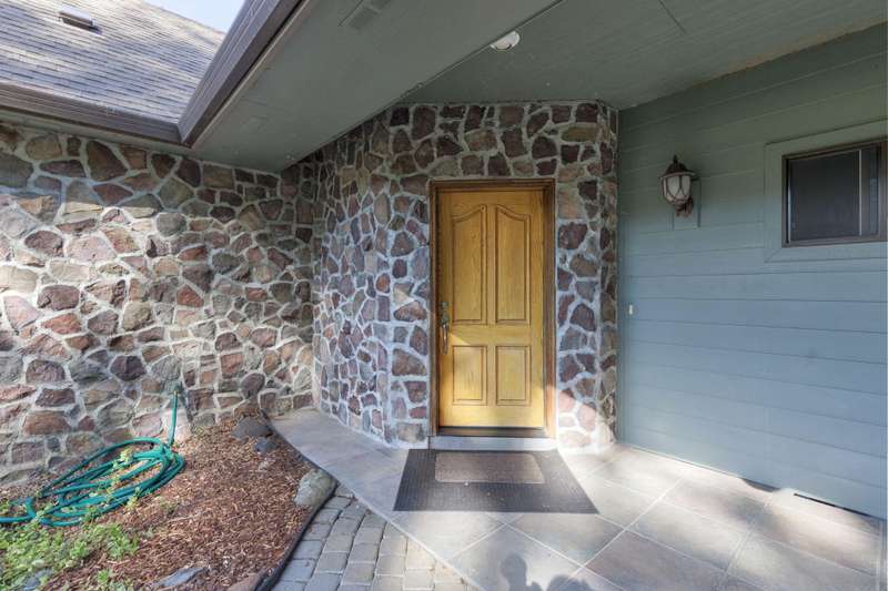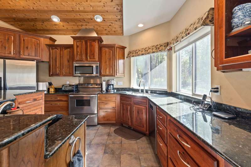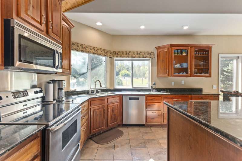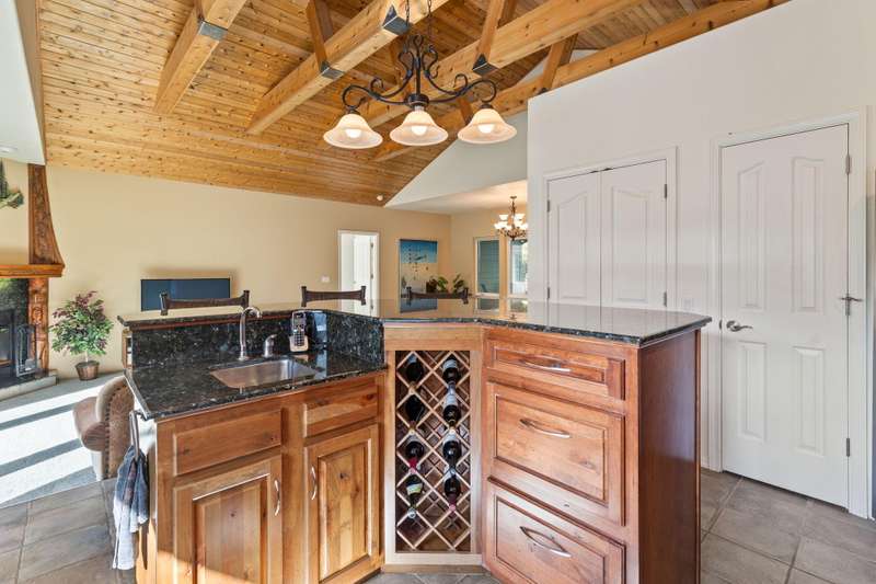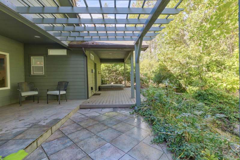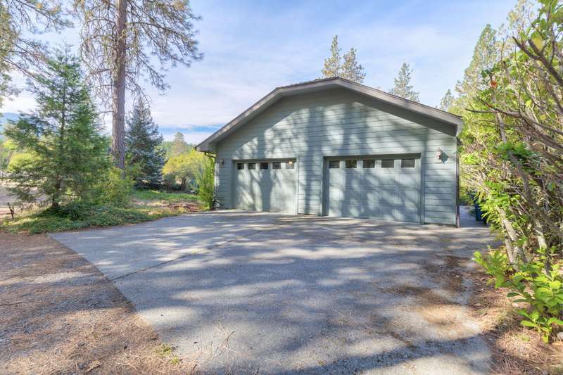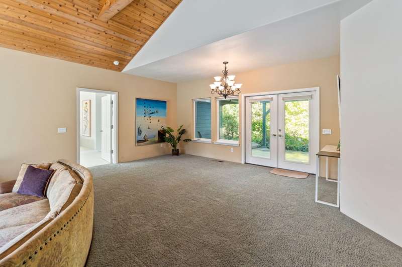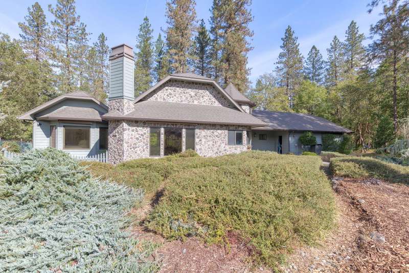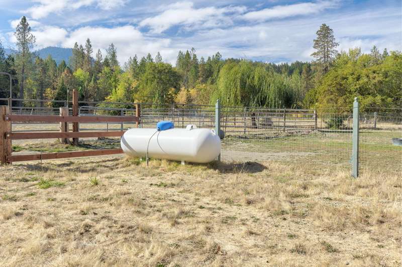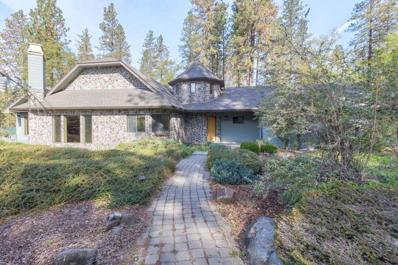 Welcome Home! Custom upgrades throughout feel more like a rural retreat with it's cozy home and horses facilities situated on 5 usable acres. The large living room windows provide incredible views of the mountains as well as the horse pastures. Architect enthusiasts will marvel at the robust exposed beams running across the vaulted ceilings, the sunken living room and expertly hand carved fireplace framing. Step outside onto the patio, where you can enjoy the serene surroundings from within your hot tub. Perfect for guests or extended family with studio/guest quarters above barn offering breathtaking views from the deck. Also features a whole house auto-transfer generator. This property is a true equestrian's dream, offering well-maintained horse arenas and grazing areas with stalls and tack room. Whether you're looking to enjoy the beauty of rural living or seeking a property with ample space for your horses and hobbies, this home offers it all.