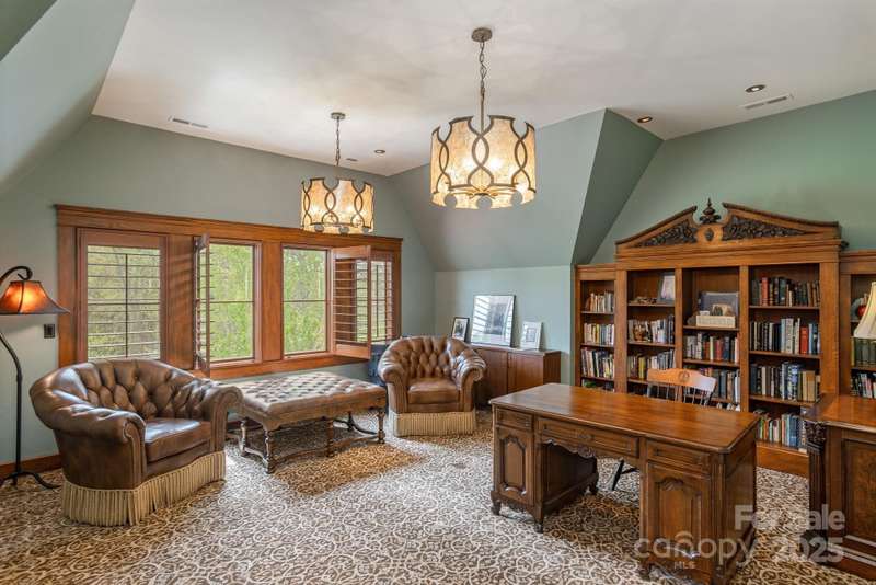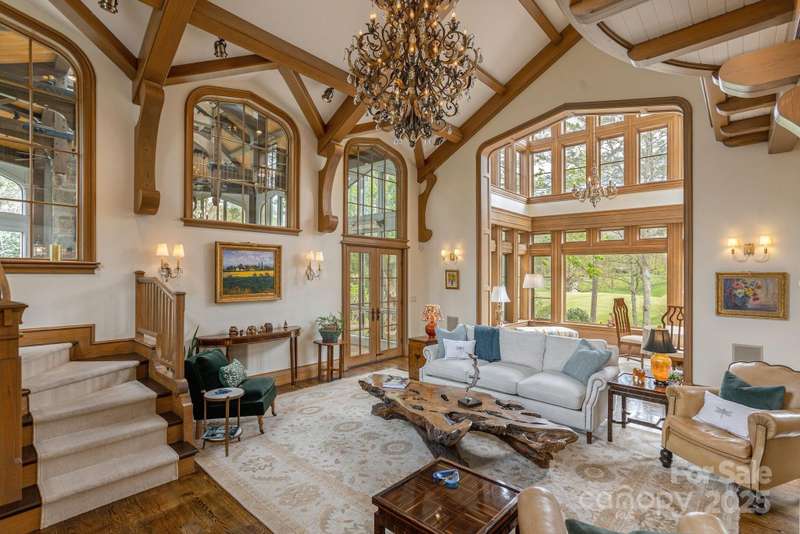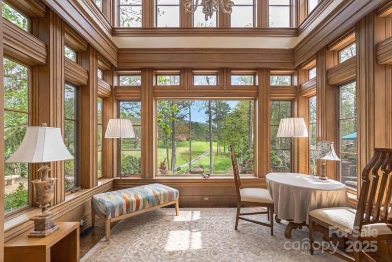 Welcome to 8 Fairway Place-a residence where timeless architecture meets refined living in one of Asheville's most sought-after communities. Inspired by French chateau elegance with subtle Tudor influences, this Griffin Architects, PA home offers both grandeur and comfort, just steps from the 7th fairway of the exclusive Biltmore Forest Golf Course. The entry hall is graced with William Morris-inspired stained-glass windows and a painted strapwork ceiling that highlight the home's history and artistry. An Edwardian sunroom/parlor, filled with natural light and set with terracotta flooring, creates an inviting space for relaxation. The formal dining room features stenciled Venetian plaster and a high ceiling adorned with a decorative plaster English rose motif. The butler's pantry, with its backlit English Art Nouveau antique stained-glass doors, opens to an expansive terrace. At the heart of the home, the soaring great hall is anchored by a striking stone fireplace framed in handcrafted woodwork-a space that is both a dramatic showpiece and a warm gathering place. Just beyond, the screened-in porch extends the living area and offers panoramic views of the lush golf course. The grounds are as breathtaking as the interiors, with thoughtful landscaping that provides year-round color and texture. Stone retaining walls and winding pathways echo the craftsmanship found throughout the home's design. From sunlit interiors to serene outdoor spaces, every detail at 8 Fairway Place reflects timeless elegance and effortless living. More than a home, it is a lifestyle defined by sophistication, community, and the natural beauty of Biltmore Forest. View the tour: bit.ly/8Fairway