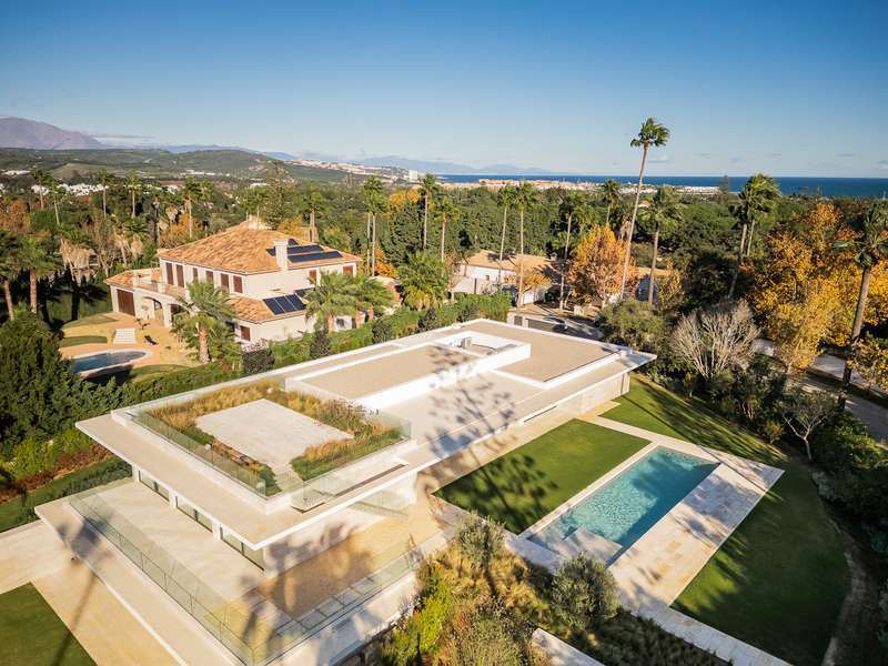 In one of the most desirable areas of Sotogrande Costa, in the heart of Kings and Queens, is this unique residence that redefines the concept of contemporary luxury. Its privileged location, just steps from the Real Club de Golf de Sotogrande, Trocadero Beach Club and the best leisure spaces in the area, makes it the perfect place for those looking for lifestyle, comfort and exclusivity. Just cross the entrance, you see the serenity of a home conceived for enjoyment. The natural light floods every corner, the spaces connect with fluidity and the noble materials convey timeless elegance. It is a house that invites to disconnect, to live every moment surrounded by peace and beauty. On a large plot of more than 3,100 m2, the house displays more than 600 m2 interiors, large terraces and a solarium on the roof from where to contemplate magical sunsets. Each detail has been designed to offer maximum comfort: large windows that open to the garden, a design kitchen equipped with cutting edge technology and rooms that combine privacy with sophistication. The main floor surprises with a majestic living-dining room with high ceilings, chaired by a chimney covered in travertine, which opens to the porch and pool. Here, life flows between interiors and exteriors, with spaces for family meetings, celebrations or simple moments of calm. The en-suite bedrooms offer privacy and comfort, with direct access to terraces and gardens. The exterior is an authentic setting to enjoy: swimming pool with special area for the little ones, barbecue area, green corners cared for in detail and a landscape environment that reinforces the feeling of being in a natural shelter within Sotogrande. On the lower floor, the master suite becomes an intimate sanctuary with dressing room, en suite bathroom and outdoor shower surrounded by vegetation. At this level, the additional spaces allow the design of a private spa, gym, cinema or cellar, adapting to the needs and lifestyle of those who inhabit it. With a design that balances modernity and warmth, this property is not just a house: it is an invitation to experience Sotogrande in its maximum expression, in a unique enclave where each day lives as an extraordinary experience. Contact us for more information.