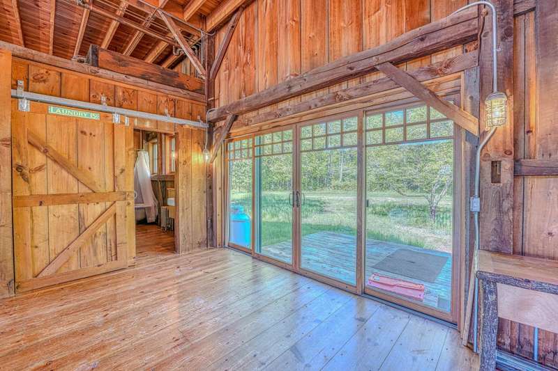 Experience rustic charm and modern comfort in this unique barn conversion set on a peaceful estate in Lisbon, NH. This two-bedroom, 1.75-bath rental showcases soaring open-beam ceilings, wide-plank wood floors, and expansive windows that fill the space with natural light and frame serene country views. The open-concept living area features a spacious kitchen with stainless steel appliances, farmhouse sink, and warm wood cabinetry, seamlessly blending character with functionality. A woodstove and exposed brick hearth create a cozy centerpiece, while sliding glass doors open to a large wraparound deck perfect for entertaining or simply soaking in the quiet beauty of the North Country. Upstairs, rustic woodwork continues into comfortable bedrooms with vaulted ceilings and charming details. Surrounded by open fields and woodland, yet just minutes to Littleton and area amenities, this one of a kind home offers both tranquility and convenience.