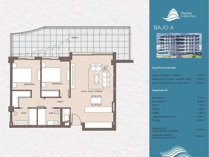Lucas Fox presents this spectacular new build development in the very port of Benalmádena. The development offers the most exclusive apartments in the Benalmádena area. Marina Golden Bay will enjoy great tranquility, perfect for disconnecting. Its undulating façade, inspired by the shape of a ship, evokes the waves of the sea and allows you to enjoy terraces open to the sea. In addition, its gardens offer a contrast of colours, while in the community pool area there are sun loungers to relax. This apartment on the first floor has clearly differentiated day and night areas. The day area houses a living-dining room with an open-plan kitchen. For its part, the night area offers 3 bedrooms and 2 bathrooms. The living-dining room enjoys access to the terrace. The property has a modern design, with neutral colours in beige and white, which increases the feeling of spaciousness. The main rooms have large patio doors that provide access to the terrace with sea views that allow the entry of abundant natural light. Likewise, the open-plan living-dining room and kitchen makes the most of the space. This luxurious apartment has been meticulously designed to offer a modern and comfortable lifestyle, with spacious, light-filled interiors and high-quality finishes. Contact us for more information about these incredible homes next to the Benalmádena marina, in an area with a temperate climate all year round and more than 320 days of sunshine a year.