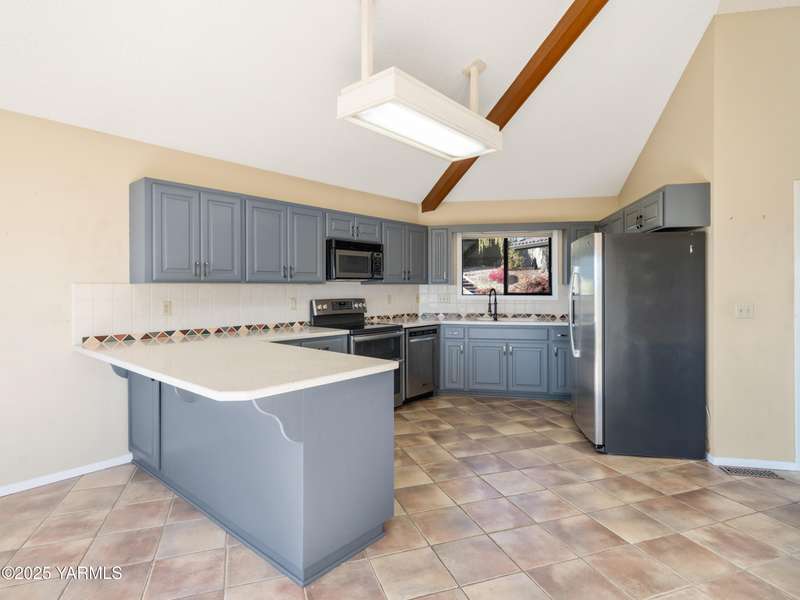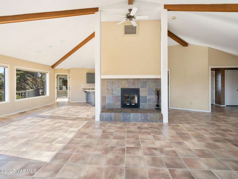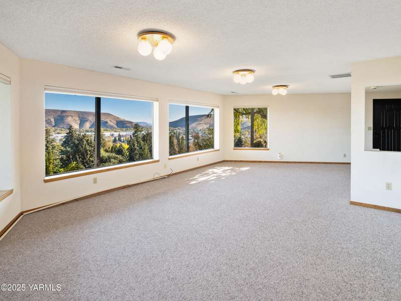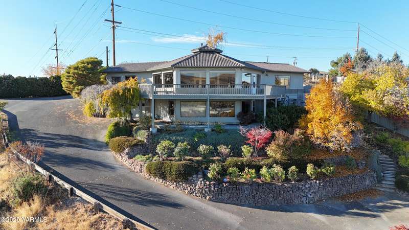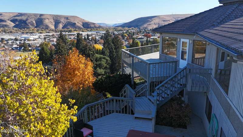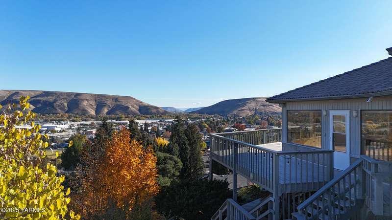 Experience breathtaking panoramic views of Selah from this spacious 4-bedroom, 3-bathroom home situated on 0.66 acres. The main level features two bedrooms and two full baths set on opposite sides of the home. The living room boasts giant picture windows, tile floors, and a wood-burning fireplace for cozy evenings. The kitchen offers updated cabinets, tile flooring, and a large pantry with plenty of storage. Step out from the primary suite onto the wraparound deck, perfect for entertaining or relaxing in the included spa. The main level also includes an attached 2-car garage for convenience. The lower level adds even more versatility with two additional bedrooms, a full bath, second kitchen area, laundry room, and a large living space with expansive windows. A second 2-car garage and storage room with a newer furnace, newer water heater, and water softener complete the lower level. With its tile roof, dual garages, and unmatched views, this home is ideal for multi-generational living, large families, or Airbnb potential. Enjoy your own private retreat right in the heart of Selah!