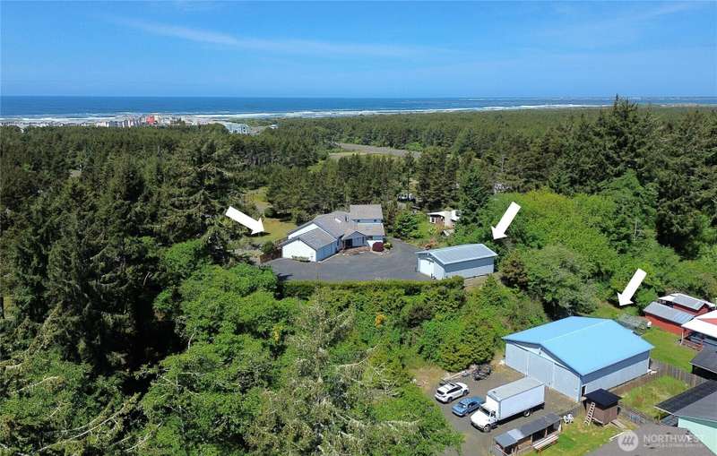 Best Buy at the Beach! The stunning design, ideal for entertaining and the large high dune parcel set this expansive custom home apart. Lovingly maintained since the owner had is constructed in 1988, from the moment you arrive you will appreciate the natural light and open concept. Large kitchen, ample dining area, voluminous great room and a generous primary suite, all with access to the large west side deck and hot tub. Downstairs the guest level provides privacy with 2 bdrms, rec toom and unfinished area preplumbed/wired for2nd kitchen. In the crows nest the large room could be an art studio, home office, ultimate play area or any number of creative uses! Detached garage plus Bonus Boat Shed with separate access to boot! Must see!