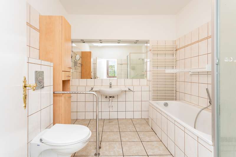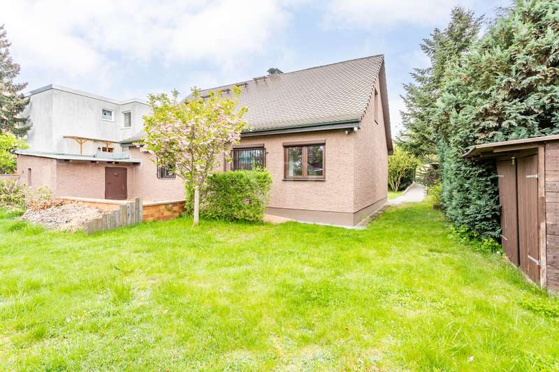 Sunny property in Berlin Rudow in the flower district with solid detached house and generous building possibilities - For sale is a house with a partial basement and a living/usable area of approx. 165 m², which was built around 1937 in solid construction. The house was renovated in 2015 and is in a well-kept condition. The property stands on a plot of approx. 840 m². There is also a carport, a garden shed and a massive outbuilding on the plot. The living/usable space of approx. 165 m² offers a total of four and a half rooms. The floors are tiled. The usable space is divided into two small cellar rooms and the outbuilding next to the house. The living space is divided from the entrance area or hallway with utility room into living room, bedroom, bathroom with bathtub, kitchen with adjoining dining room. One of the two cellar rooms can be reached via a hatch in the floor. The second cellar room is accessed separately via a staircase by the bathroom. The attic is reached via the staircase. There are two spacious bedrooms here. The garden is practically green and offers plenty of space for numerous leisure activities. Due to the size and layout of the property, a variety of new building projects can be realized on the plot. Tranquillity and seclusion are combined here with an excellent infrastructure. Shopping facilities for daily needs, schools, nurseries, public transport links and the Gropius-Passagen shopping arcades are all in the immediate vicinity. Enjoy the peace and quiet in this quiet residential street with its well-kept detached houses and apartment buildings. Further details about the property, pictures and the location are available on request, please do not hesitate to contact us.