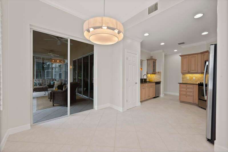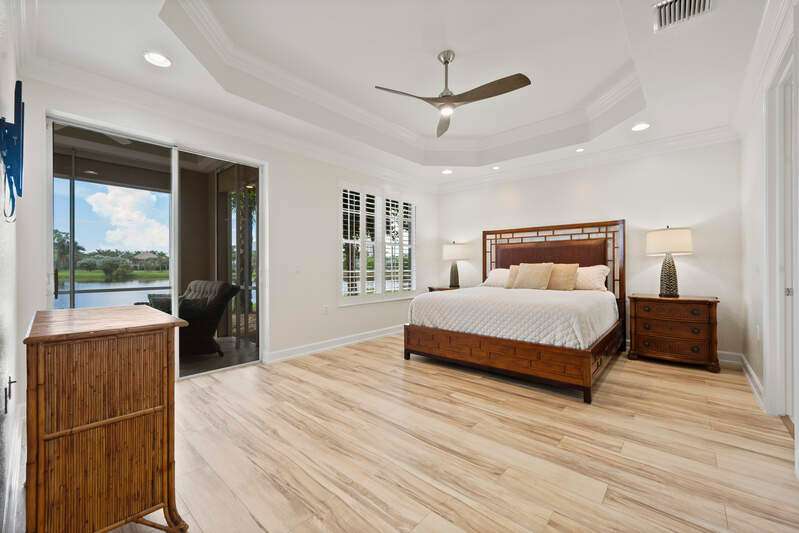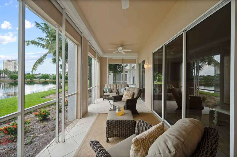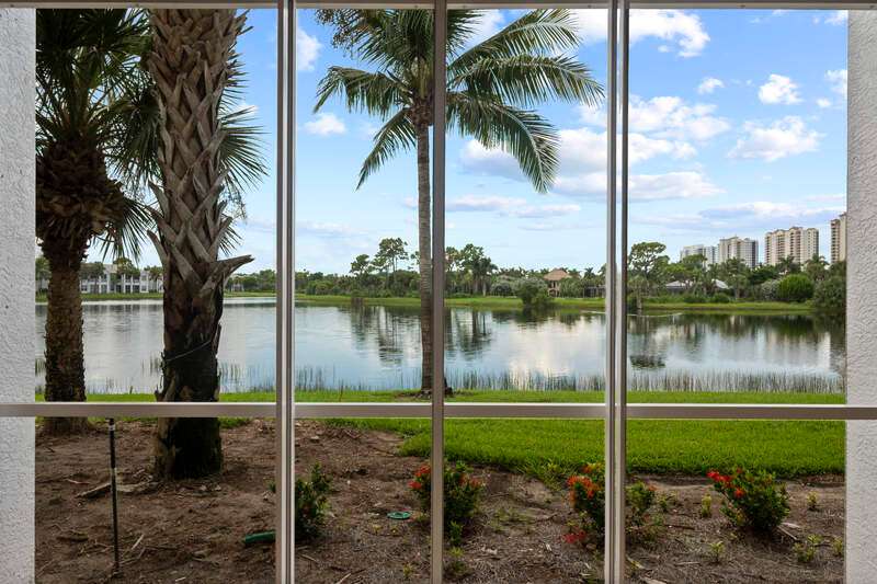 Welcome to 23700 Merano Ct #101, where design meets effortless Florida living in the prestigious enclave of The Colony. This first-floor home offers over 2,000 square feet of refined comfort with 3 bedrooms, 3 bathrooms, and serene lake views that invite relaxation from the moment you arrive. The spacious layout provides privacy and flow. The bright and airy great room with dining area adapts easily to your lifestyle whether you're working from home, hosting guests, or simply enjoying quiet evenings at your retreat. The heart of the home is a thoughtfully designed kitchen featuring abundant cabinetry and generous counter space - ideal for both casual meals and elegant entertaining. The expansive primary suite is a true retreat complete with dual vanities, a soaking tub, separate walk-in shower, and an oversized closet. Two additional bedrooms offer comfort and versatility for family or visitors. Recent updates include new bedroom flooring and new stylish guest bathrooms. Freshly paint inside and out. Step outside to your screened lanai, perfectly positioned to capture tranquil lake views and gentle Gulf breezes - your private sanctuary for morning coffee or sunset cocktails. The electric shutter offer peace of mind. An attached two-car garage adds convenience. The exclusive Merano amenities include a private pool and spa, renovated clubhouse kitchen, and fitness room, offer resort-style living just steps from your door. Additional benefits include being a resident of Pelican Landing where you'll also enjoy access to a rare collection of world-class amenities: a private 34-acre beach park with ferry access, tennis and pickleball courts, a canoe/kayak park, bocce, a full fitness center, and an active social calendar. Recent community updates including new roofs, fresh exterior paint, and landscaping. This home is not just move-in ready - it's future-ready. Whether you're searching for a seasonal escape or a full-time resident, 23700 Merano Ct. #101 offers the perfect blend of comfort, style, and lifestyle in one of Southwest Florida's most coveted gated communities.