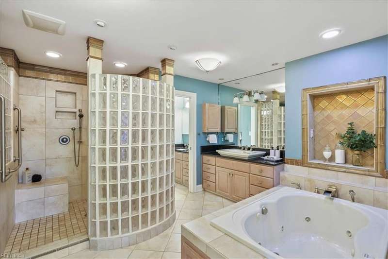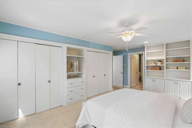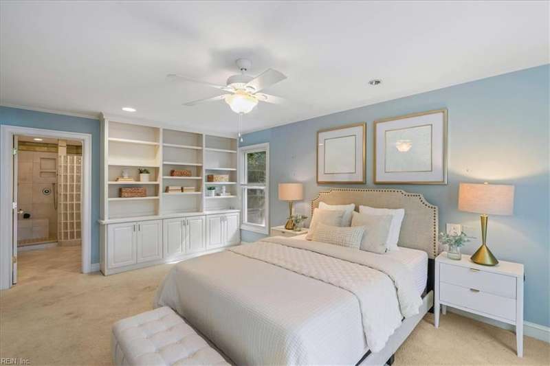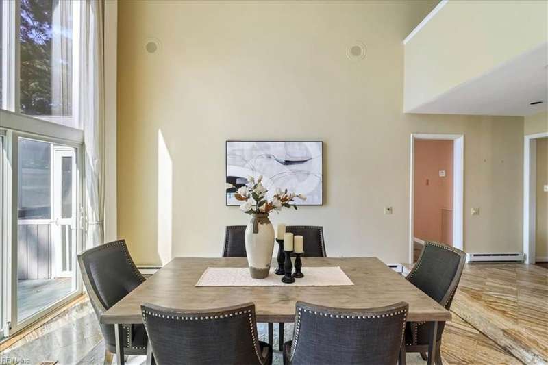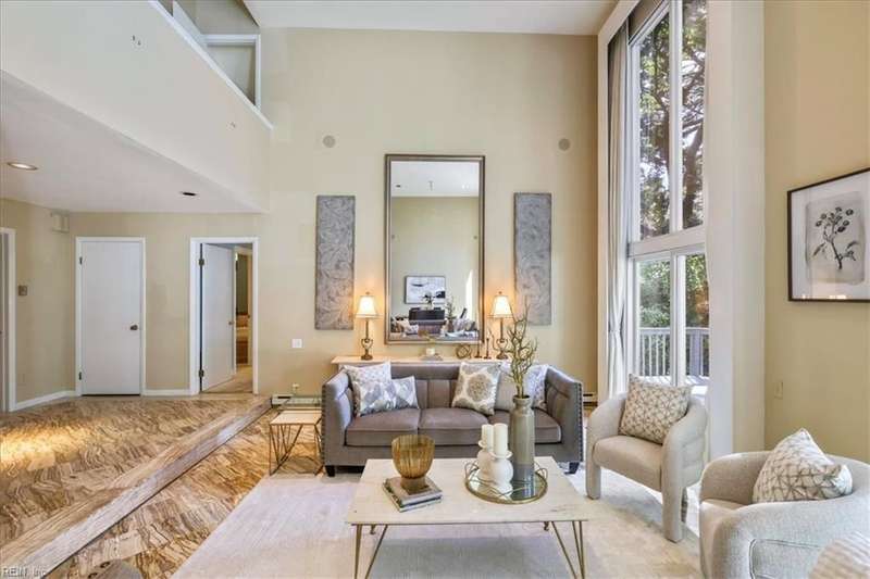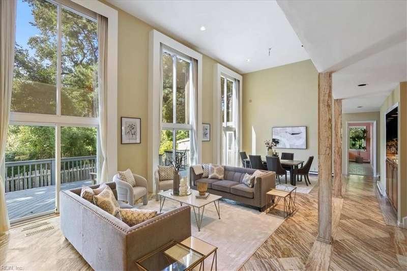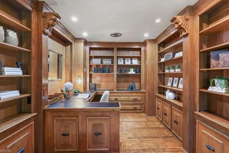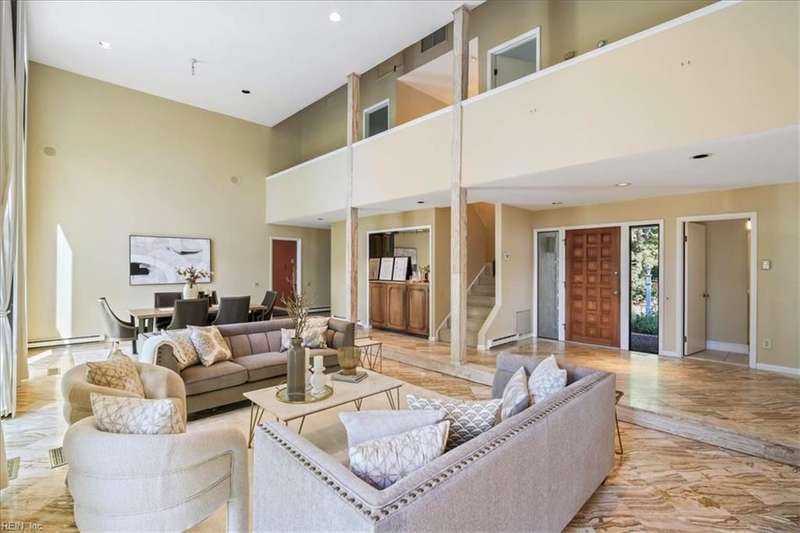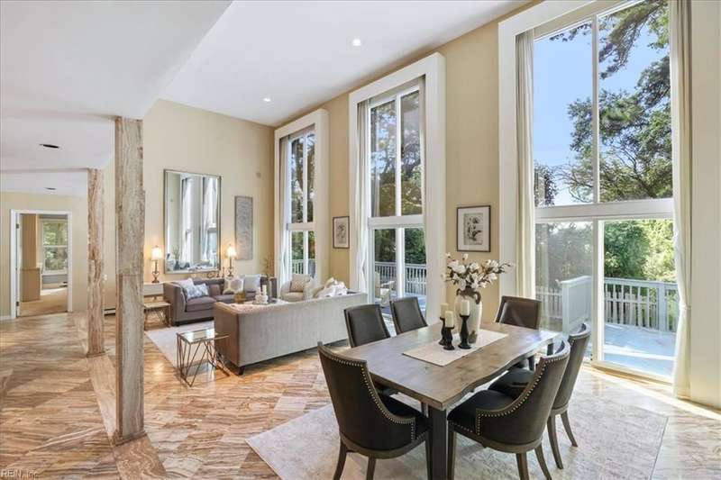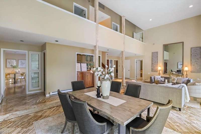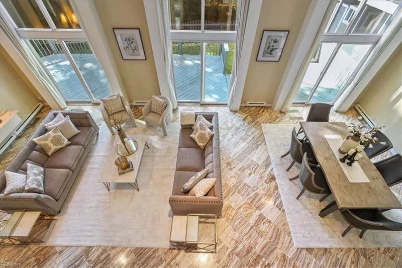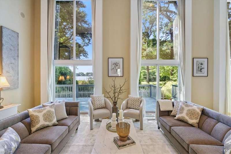 Escape the cookie cutter rut! This modern, sophisticated Deco-inspired home showcases a dramatic two-story living and dining area that creates a grand impression. With 4BRs and 4BTHs, it offers both comfort and flexibility. The first-floor primary suite is a luxurious retreat, featuring an exceptional walk-in closet and spa-like bath. Thoughtfully designed, the layout includes a paneled office, a private family room with a vaulted ceiling, fireplace, and a well-equipped eat-in kitchen that's ideal for the gourmet inclined. There's also a versatile bonus room with endless possibilities - gym, office, or studio. Expansive decking and screened porch at the back of the home are perfect for entertaining or simply enjoying the tranquil water views. A truly remarkable residence that's ready for the next owners to make it their own.