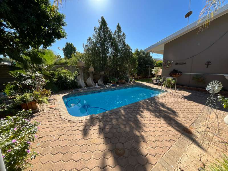 This spacious and beautifully designed home in the popular Wesbank area offers the perfect mix of classic style and modern living. Set on a large plot, the main house has four bedrooms and welcomes you with a lovely entrance hall that leads into a cozy lounge. There’s also a second living room that can be used as a study, dining room, or formal lounge. The heart of the home is the open-plan kitchen and braai area, which includes a built-in indoor braai—great for family time and entertaining. A separate scullery adds extra convenience. The main bedroom has its own ensuite bathroom and air conditioning, while the other bedrooms share a neat guest bathroom. Outside, you'll find a private backyard with a sparkling swimming pool, perfect for enjoying the warm weather. At the back of the property is a flatlet with its own open-plan kitchen and living area, an indoor braai, an ensuite bedroom with aircon, and a gas geyser. There's also a separate storage room and an extra room that can be used as a extra living area or office. The home is also energy-efficient with solar panels, a battery backup system and solar geyser, giving you peace of mind and saving on utility costs. This is a fantastic opportunity to own a beautiful, practical, and sustainable home in one of Oudtshoorn’s best areas.