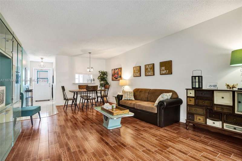 Bright and cozy corner unit with 2 spacious bedrooms, fully furnished for your comfort. Enjoy peaceful mornings in the lovely Florida room, with stunning views of the lake and pool area. This move-in ready gem features updated bathrooms and is located in a warm, welcoming HOPA community. Take advantage of the heated pool, shuffleboard courts, clubhouse, gym, and BBQ area—perfect for enjoying life! Plus, you're just minutes away from the Turnpike for easy access to everything