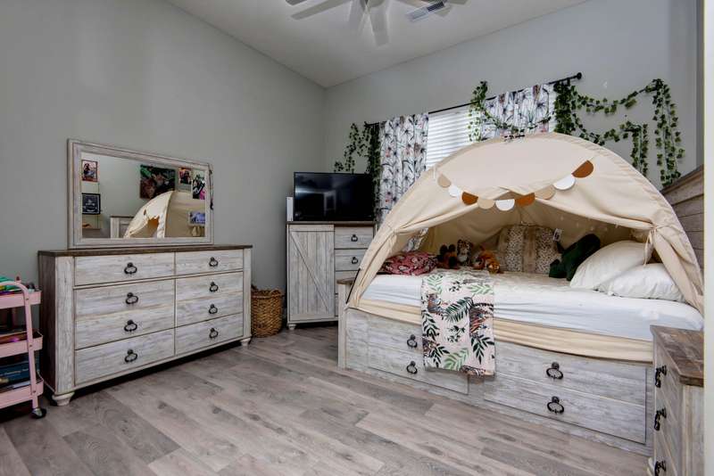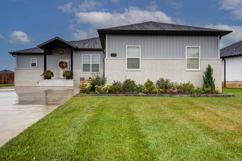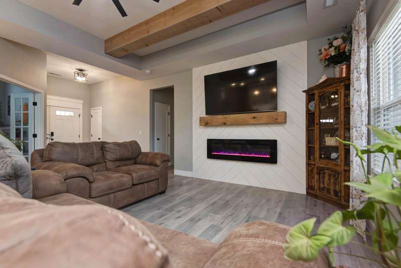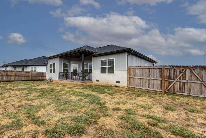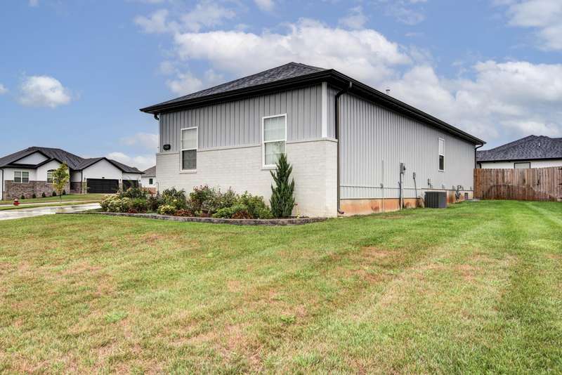 Better than new! This stunning 1-year-old, 4-bedroom home in the sought-after Rogersville School District offers all the upgrades without the wait. Perfectly positioned on a corner lot in the established Lakewood Estates neighborhood, the home enjoys the unique benefit of two cul-de-sacs--an ideal setting for walking, biking, and safe family play. Inside, you'll find a bright, open floor plan with a desirable split-bedroom layout. All hard-surface flooring includes luxury vinyl plank throughout the main living areas and bedrooms, with sleek tile in the baths and laundry. The living room makes a statement with its shiplap accent wall, modern electric fireplace, raised ceilings, and striking wood beams. The kitchen is equally impressive, featuring a spacious island, pantry w/wood shelving, custom white cabinetry with glass accents, under-cabinet lighting, a farmhouse sink, stainless steel appliances including a gas range with pot-filler, and the refrigerator stays. The dining room adds charm with its elegant wood wainscoting. The large primary suite is a true retreat, offering a luxurious soaking tub, separate shower, and walk-in closet. Each bedroom is enhanced with sleek modern ceiling fans, blending comfort with style. Additional highlights include an oversized side-entry two-car garage, a covered back porch with decorative concrete and iron railing, a fully fenced backyard with privacy fencing, and an irrigation system with custom landscaping beds. The home is also equipped with an ADT security system, distinctive lighting, and filled with natural light from abundant windows already outfitted with blinds--saving the buyer one of the most common move-in expenses. With its thoughtful design, stylish finishes, and move-in ready condition, this home truly offers the perfect blend of comfort, convenience, and sophistication. 100% USDA financing available for qualified Buyers. Call today for your private showing!