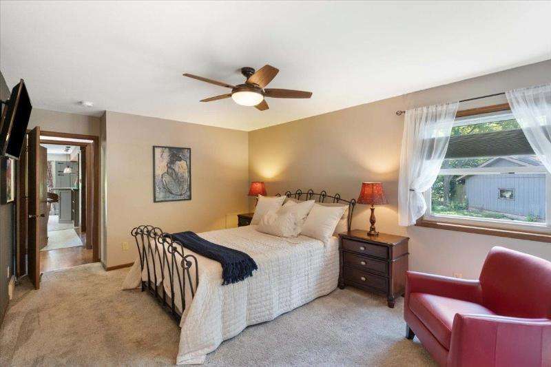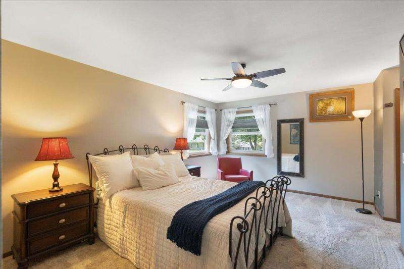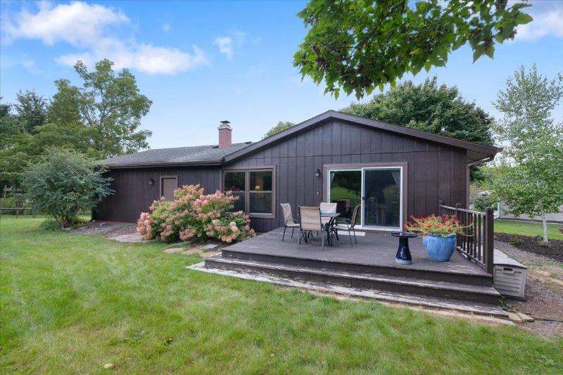 Move-in ready with beautiful updates throughout, this inviting 3-bedroom, 2.5-bath ranch home is tucked away on a quiet westside cul-de-sac and backs up to a peaceful park, offering added privacy and green space. You'll love the bright, open living room featuring a striking floor-to-ceiling brick wood-burning fireplace. The spacious kitchen is ideal for entertaining and opens to a large deck and private backyard. The oversized primary suite features two closets and a private, recently updated ensuite bath. The finished lower level adds even more living space, a built-in bar, a convenient half bath, and a separate flex room that could be used as a bedroom, office or hobby room. Conveniently located near shopping, parks, and public transit.