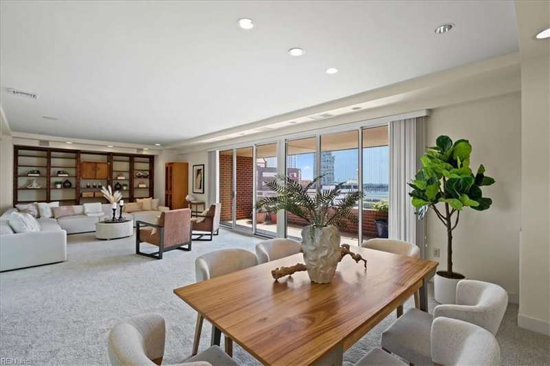 Experience elevated urban living in this exceptional condominium offering panoramic vistas of life along the Lafayette River and the vibrant skyline of downtown Norfolk. Bathed in natural light, this thoughtfully designed residence has three strategically placed skylights and expansive sliding glass doors that lead to the three generous balconies. Enjoy your morning coffee with a sunrise view of the river or evening cocktails against the city's twinkling lights. The open floor plan maximizes both space and light, creating an atmosphere of effortless sophistication and warmth.