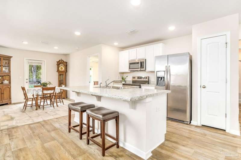 Welcome home!! This like-new cottage style home is move-in ready. Situated in a quiet cul-de-sac, the home offers peace and tranquility. Stepping inside, you are greeted with wood look LVP flooring and neutral colors. The front of the home offers a coat closet, access to the laundry room and garage. The main living space offers recessed lighting and abundant natural light. The open concept moves into the kitchen which offers an island with breakfast bar seating, pantry, and stainless steel appliances. White cabinets compliment the space. Flowing into the dining area, there is space for a dining room table and additional seating. The primary bedrooms offers copious space with a walk-in closet while the home offers a split floorplan for added privacy. Additional features include brand new carpet, mature landscaping, and smart home features.