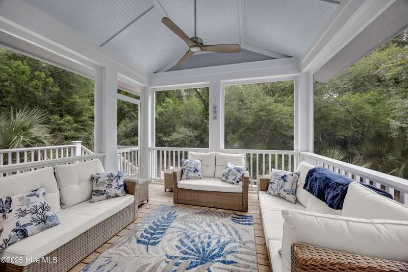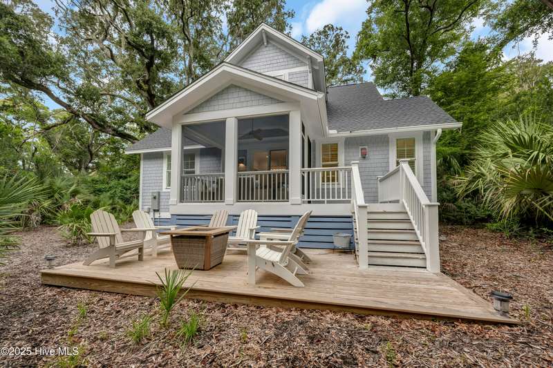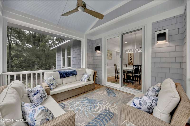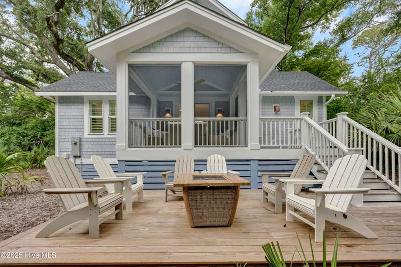Welcome to 2114 Heron Trace, an elegant retreat nestled beside the tranquil Maritime Forest. Blending timeless coastal architecture with modern comforts, this home captivates with its inviting screened porch and thoughtfully designed outdoor living area, perfect for savoring Bald Head Island's relaxed pace.Inside, natural light fills every corner, enhancing the open floor plan that effortlessly connects living, dining, and kitchen spaces, ideal for both entertaining and everyday living. The well-planned layout offers three spacious bedrooms plus a charming children's bedroom conveniently attached to a guest suite.The chef's kitchen is a true centerpiece, featuring Italian stainless steel appliances from Bertazzoni, custom cabinetry, and generous counter space. From casual breakfasts to elegant dinner parties, this space is designed to make every culinary experience a pleasure, blending excellence and a passion for food.Step outside to a private, landscaped deck, perfect for grilling or simply enjoying the gentle ocean breeze. Beyond your doorstep, embrace the island lifestyle with a swim at the Bald Head Island Club or a rejuvenating visit to the Island Retreat and Spa.Perfectly positioned, this home offers easy access to pristine beaches, scenic nature trails, and boating adventures. Offered furnished, it includes both a six-passenger and a four-passenger golf cart for effortless island exploration. A BHI Club Lifestyle membership is available for separate purchase.Experience coastal living at its finest in this meticulously crafted home, where every detail has been designed for comfort, style, and a genuine sense of place. Schedule a tour today and let 2114 Heron Trace become your island sanctuary.