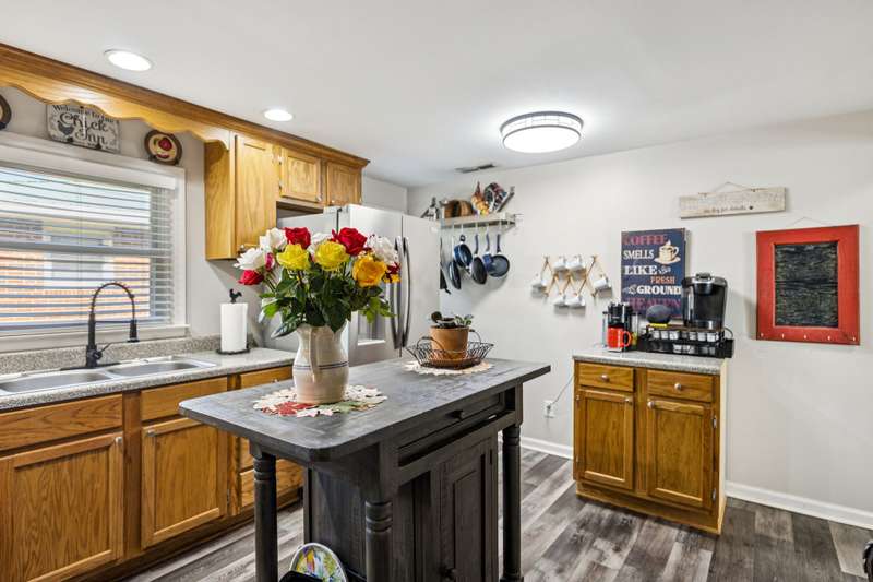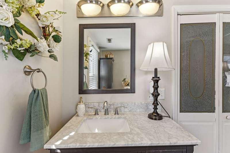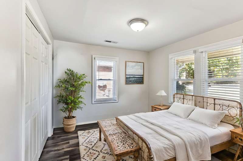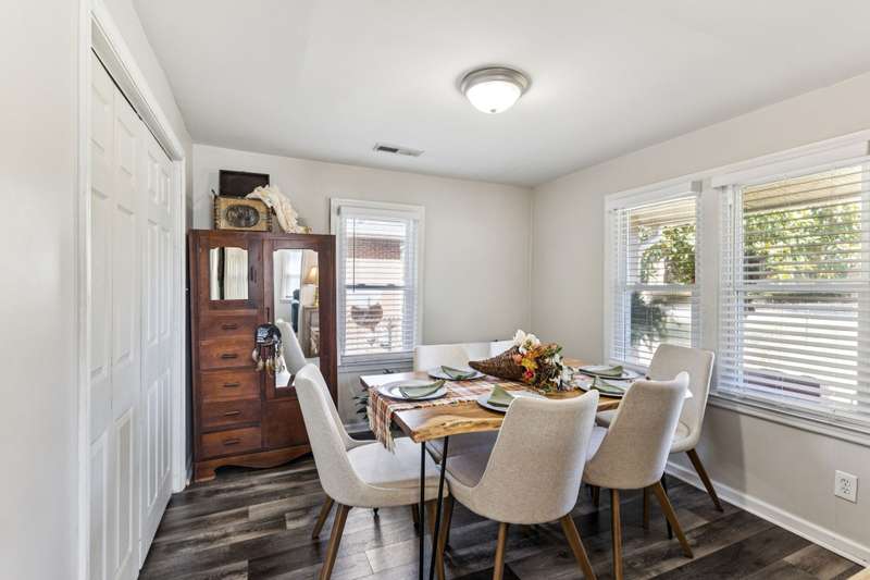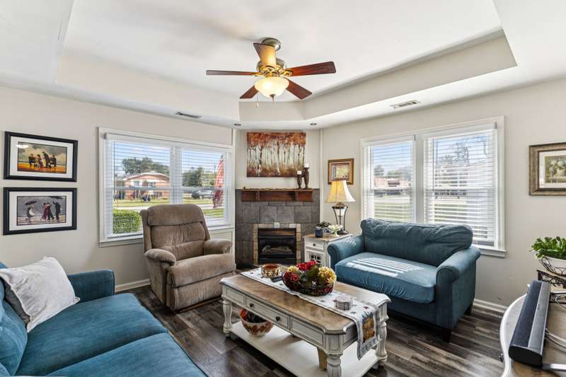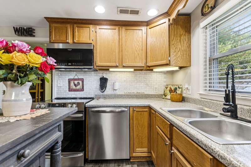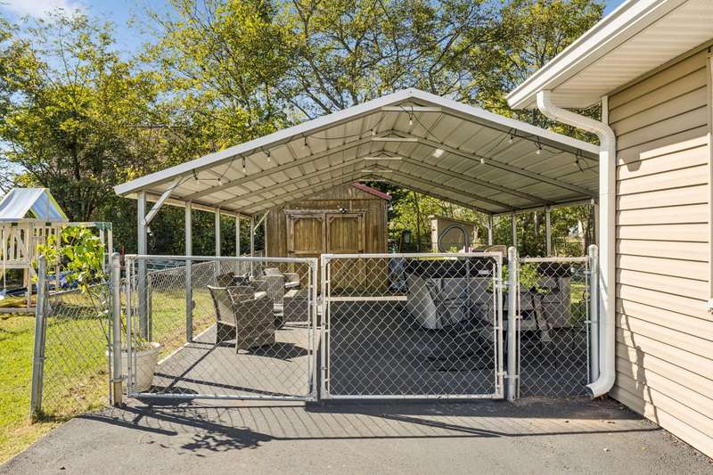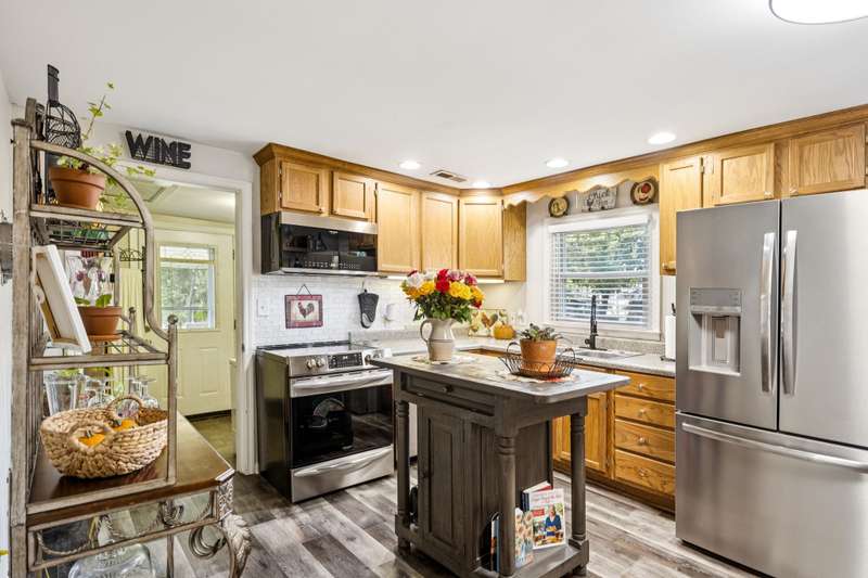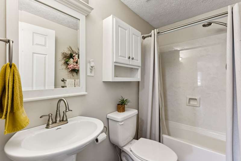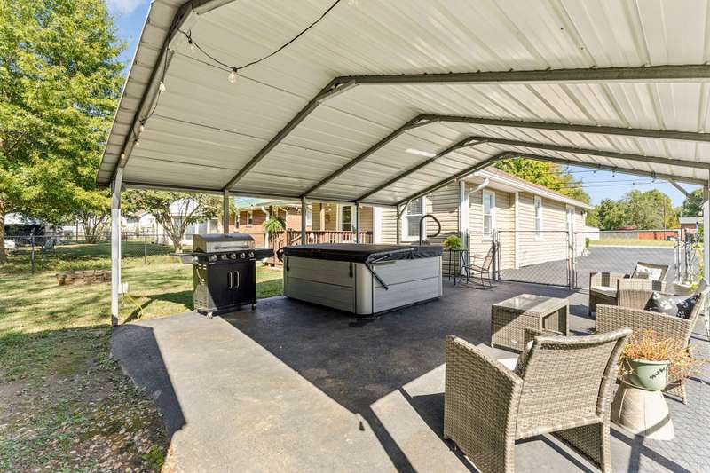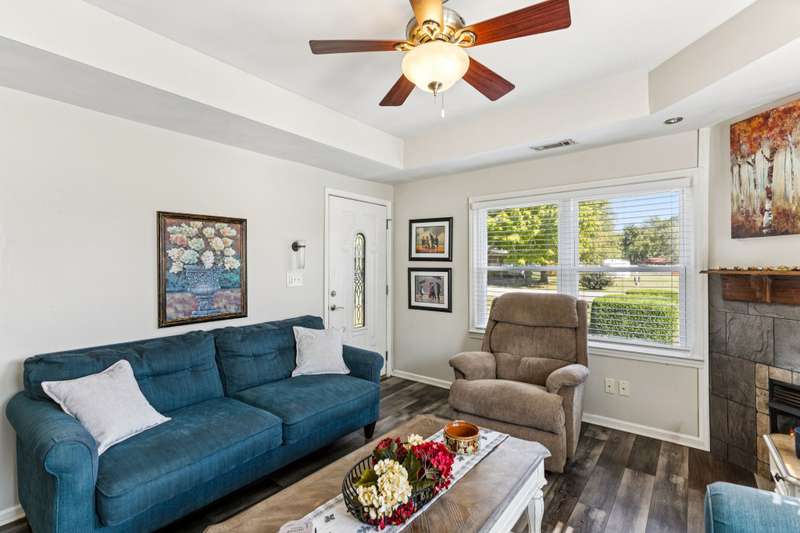Move-in ready and totally chill! This renovated 2020 2 bedroom, 2 bath home is ready for its next owner. Find your happy place with dual outdoor covered spaces: a covered front porch and a covered back deck. The interior offers a comfortable living room with a gas fireplace and a crisp, clean kitchen featuring updated stainless steel appliances (new dishwasher & microwave included!). The primary bedroom has a generous private bath with a stand-alone shower and a closet. Practical features include a dedicated laundry area with storage cabinets and storm doors on both main entrances. The outdoor setup is fantastic for anyone needing space and power: an 18'x22' carport with electric outlets, an outdoor shed with electricity, and a backyard firepit. The location is ideal for commuters with easy interstate access and for families, as it's walking distance to the local elementary school and close to popular shopping and restaurants.