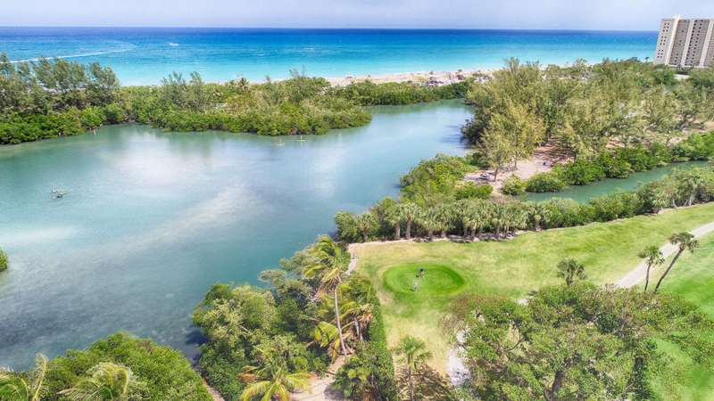 Avail Dec-April 2026 at $8,000/mo. Walk to Jupiter Beach from this 2 bedroom, 2 bath + Loft END UNIT in the gated, beachside community of The Estuary. This beautifully renovated residence is located on the ''back nine'' of Jupiter Dunes GC & nestled between DuBois Park, Jupiter's natural estuary & Atlantic Ocean. Relax on the screened lanai overlooking the golf action on the 11th hole. This loft style condo offers a custom kitchen w/quartz countertops & SS appliances; gorgeous luxury vinyl wood plank flooring; soaring ceilings; primary suite w/walk-in closet; lovely guest bedroom; updated quartz/tiled baths; loft perfect as den or 3rd bedroom; full sized washer/dryer; 1 car garage; impact windows. Walk to waterfront restaurants!2026 Off-Season available@ $3,000/mo. Come live at the beach!