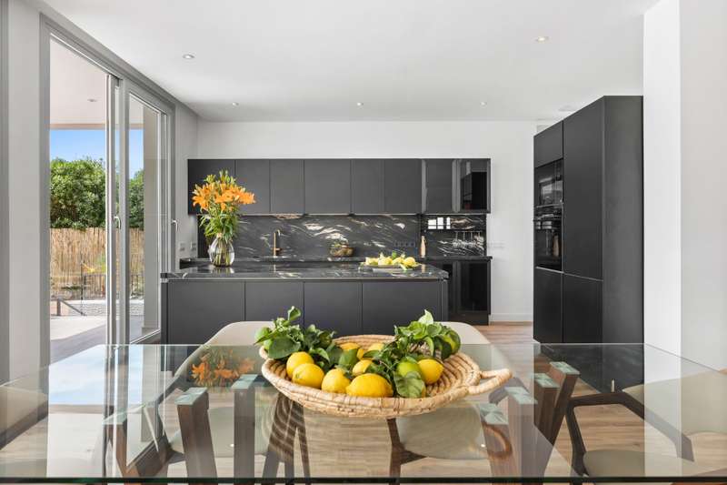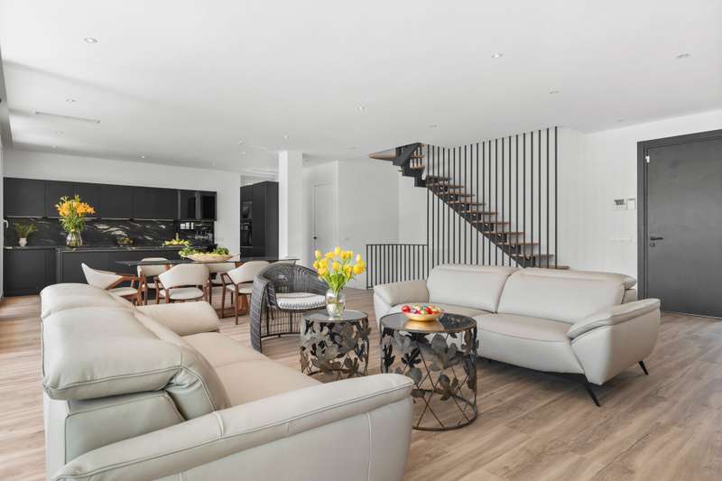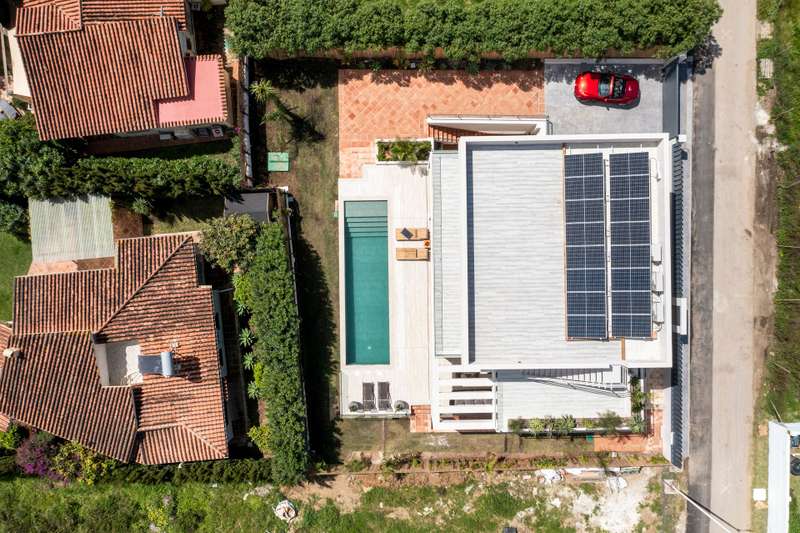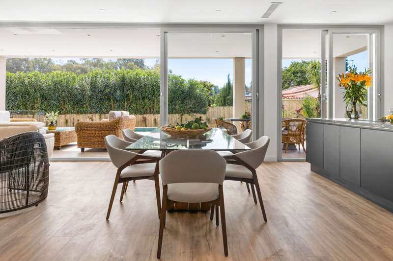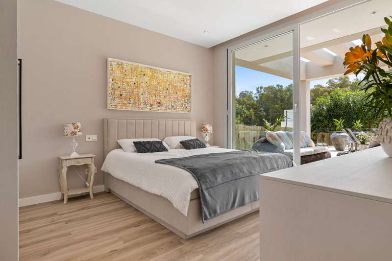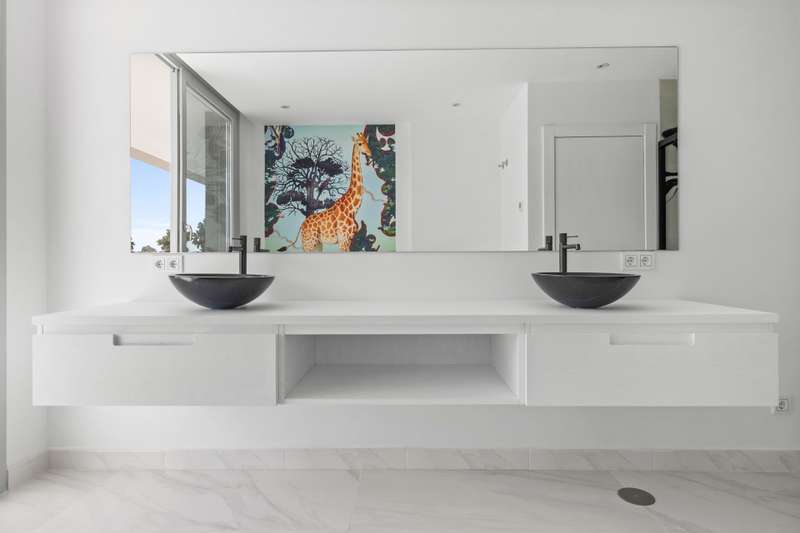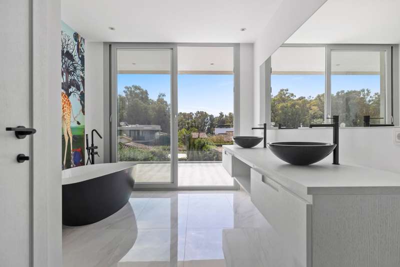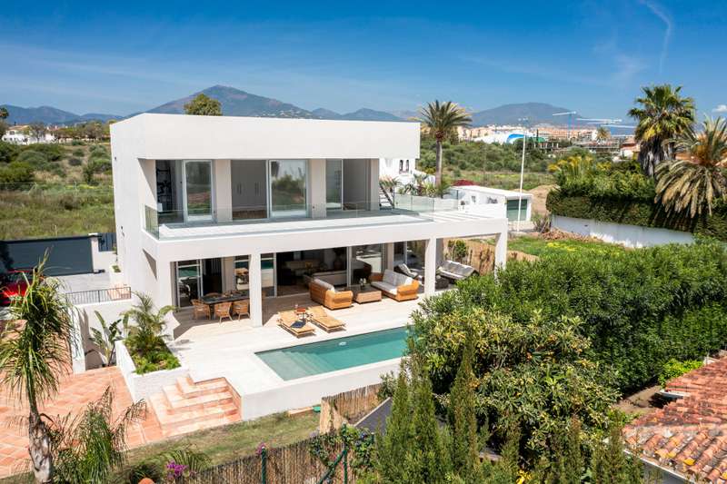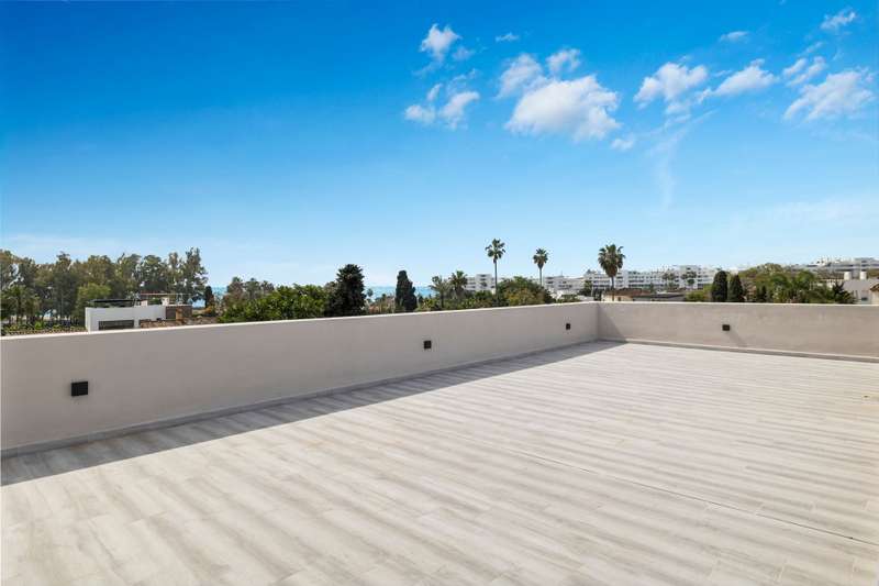 Newly built quality villa on the beach side of San Pedro de Alcántara. Build to the highest German qualities. Walking distance to the beach and the Paseo of San Pedro. Main floor: Entrance, living and dining area with a fully open plan kitchen with Bosch appliances, guest toilet, one guest bedroom en suite. Access from all areas to the covered and open terraces and the private pool. First floor: Master bedroom en suite with dressing area and one guest bedroom en suite. Private terraces. Roof terrace. Lower floor: A separate apartment with another fully fitted kitchen, one guest bedroom en suite, and an entertainment area or gym. Inside parking for two cars. The furniture could be negotiated.
