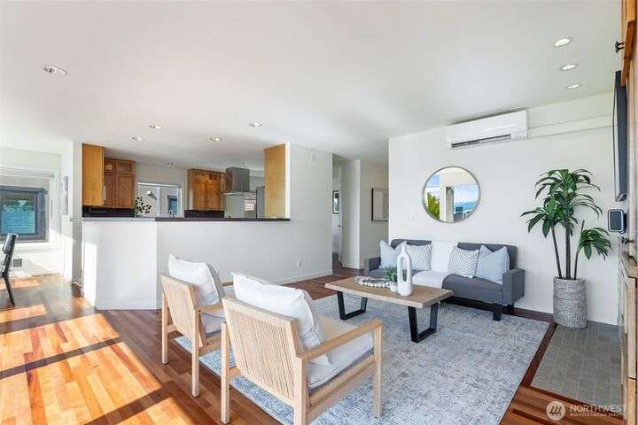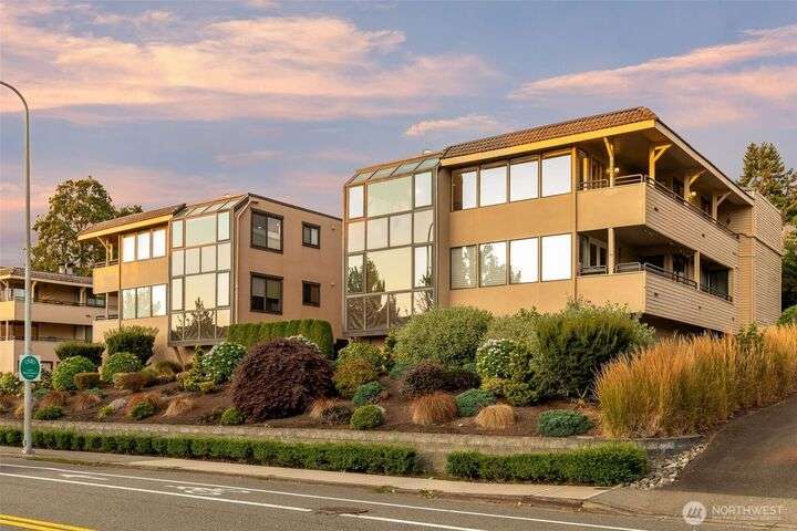 Active downtown living meets Lake Washington views in this sophisticated top-floor condo! Just steps to the lake, Carillon Point, DT Kirkland, cafés, boutiques & award-winning dining. This turnkey 3 bed/2 bath home is freshly updated w/ new paint, refinished hardwoods & new carpet, and shares no common walls. Wake up to sparkling water views from your private balcony, entertain in sunlit spaces, then head out for waterfront strolls, paddle boarding or happy hour. Rare 2.5-car garage + 2 extra parking spaces w/ Tesla EV charger for added convenience. Easy access to 405, Google, Bellevue, Seattle & Amazon—perfect for those wanting a vibrant, low-maintenance lock & leave lifestyle in one of the Eastside’s most coveted neighborhoods!