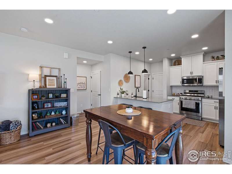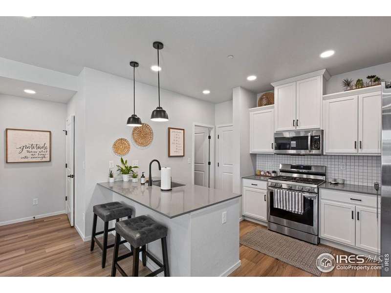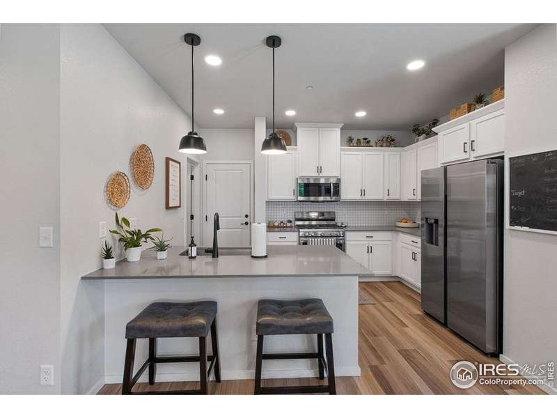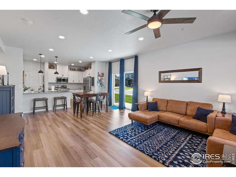 Do not miss this amazing END UNIT siding to the neighborhood open space, with south-facing sunshine pouring in through all of the oversized windows and patio door. Beautiful and gleaming luxury vinyl wood plank flooring throughout the main, open concept layout with functional kitchen space, oversized bedrooms, and an upstairs laundry. These end units on the southern side of the building don't come along very often! Come check it out at our open house this weekend or call to book your private showing! The neighborhood amenities include 2 separate swimming pools, a clubhouse, play areas, and a public park. Great location close to shopping and downtown Fort Collins. Great value!