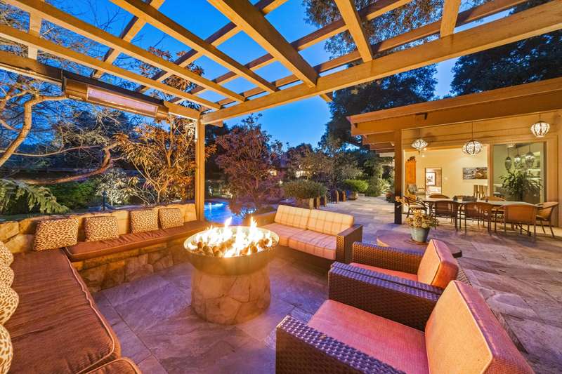 Tucked behind gates on a peaceful lane, this single-level Mid-Century estate is a tranquil sanctuary where nature and luxury converge. Lush tropical landscaping, curated pathways, and serene outdoor moments create a resort-like atmosphere. Inside, soaring ceilings and walls of glass frame garden views, while a chef's kitchen, dramatic agate fireplace, and seamless indoor-outdoor flow elevate everyday living.