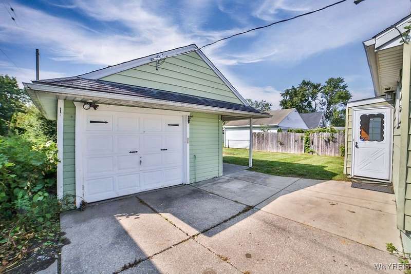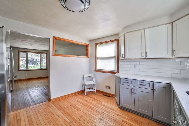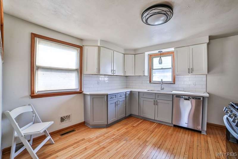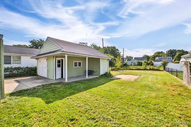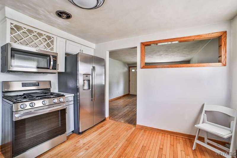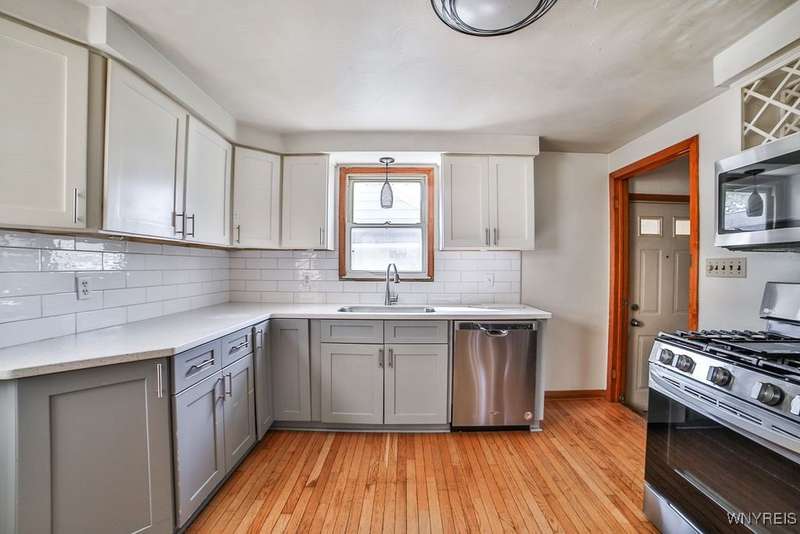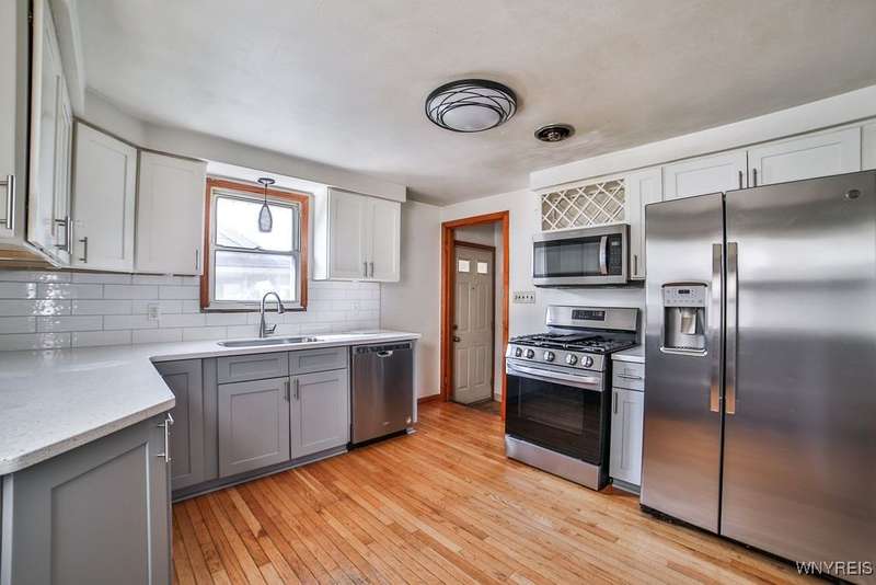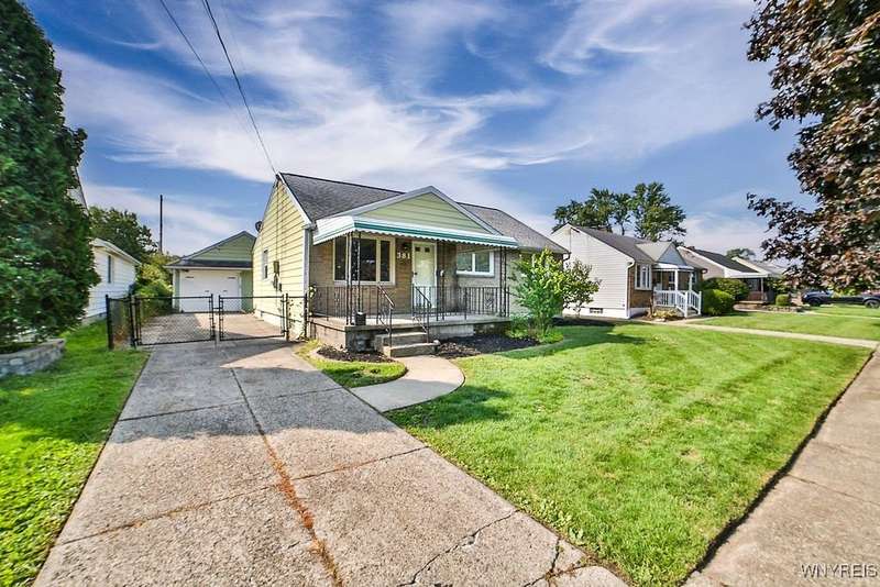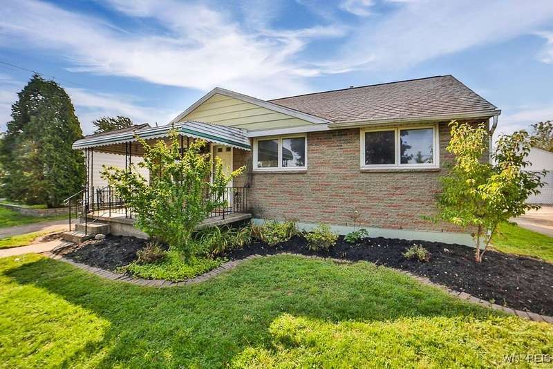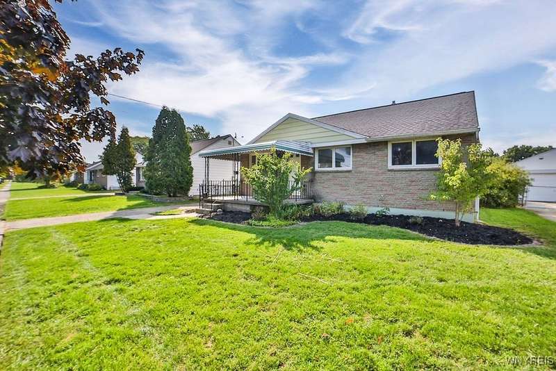 Wonderful ranch on a nice tree lined street, walking distance to everything. Updated kitchen with white cabinetry, stainless appliances, subway back splash & hardwood flooring. Spacious living room with hardwood flooring, Updated full bath with shiplap wall, 11x10 rec room in basement with half bath. Car and a half detached garage with covered side porch. Full covered front porch and pretty landscaping round out this home. Close to shopping, restaurants, thruway. Super convenient location.