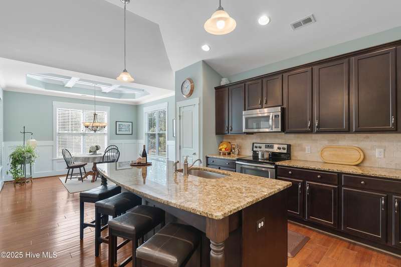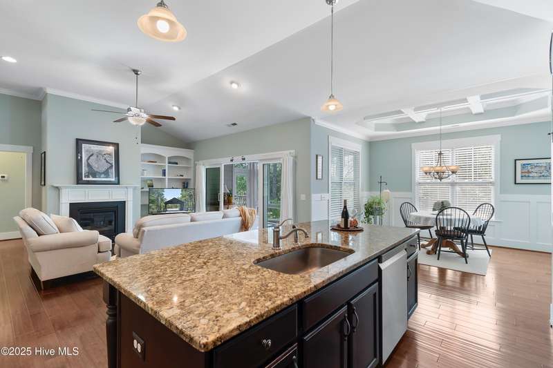 This home was featured in the 2014 Parade of Homes. Situated on a quiet street in the Woodlands Park neighborhood of St. James Plantation 3556 Holly Oak Chase is close to sought after walking and bike paths, an amphitheater with a pond and bathrooms, a Native Plant Trail and Pollinator Garden, and one of 2 dog parks in St. James. Welcome to tranquility as you step onto the covered front porch and into the inviting foyer with wainscoting and engineered hardwood flooring leading to an open floor plan where you will gather with family and friends in the great room and kitchen. Make lasting memories as you enjoy the Carolina room which was updated in 2019 from a screened porch to a fully enclosed room with a mini split. Enjoy the eat in kitchen with a large granite island and breakfast nook looking out to the very private backyard with a patio and fire pit. The kitchen has ample cabinets and countertop workspace, a gas range and a newer dishwasher replaced in 2020. The split floorplan allows for the primary suite to have privacy on one side of the home while guests and family can enjoy privacy in the 2 additional bedrooms on the main floor or upstairs where you will find a well-appointed room with a private bath. The primary suite boasts a large walk in closet off the bedroom and an ensuite bath with a soaking tub, walk in shower, double vanities and a water closet. Outside you can control your irrigation with the Hunter remote app for worry free yard maintenance. At this price don't miss a rare opportunity to own a home in one of the area's most desirable communities. Convenient access to a nearby gate for quick trips to Oak Island or local shopping. St. James Plantation is a private, gated, waterfront community boasting four golf courses, 81 holes right in your neighborhood, 4 distinct clubhouses, 3 fitness centers, tennis and pickleball courts, indoor and outdoor pools, a full-service Marina with 475 boat slips, The Apothecary of St. James full-service