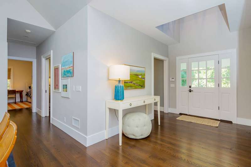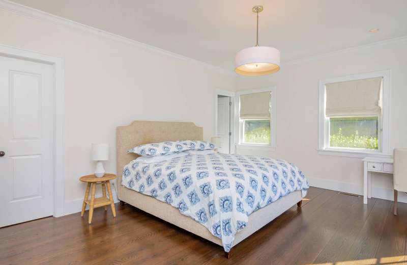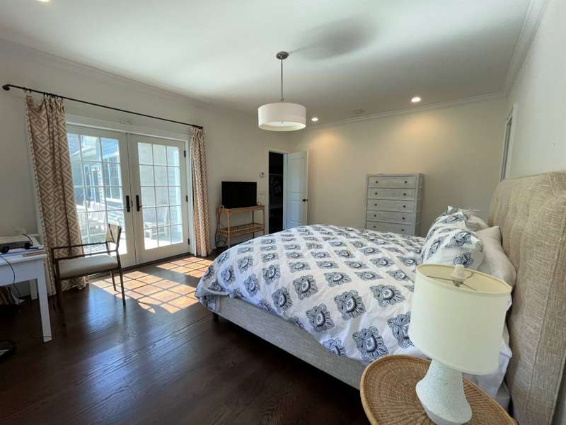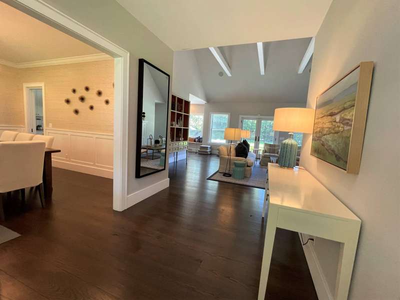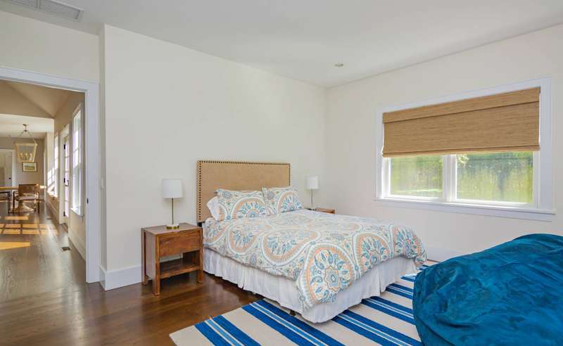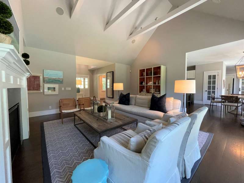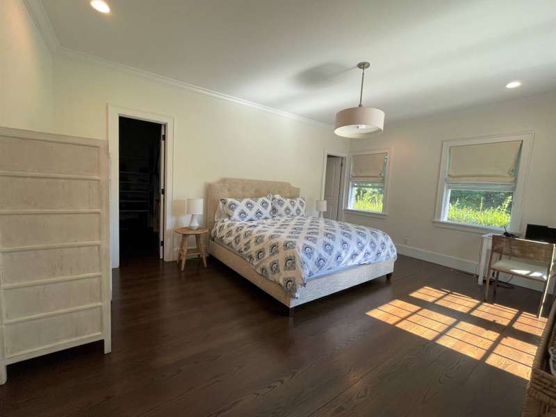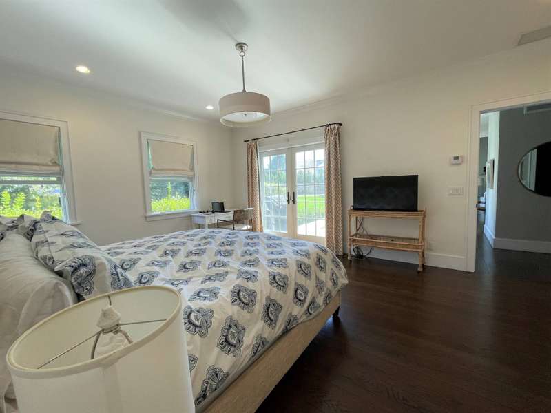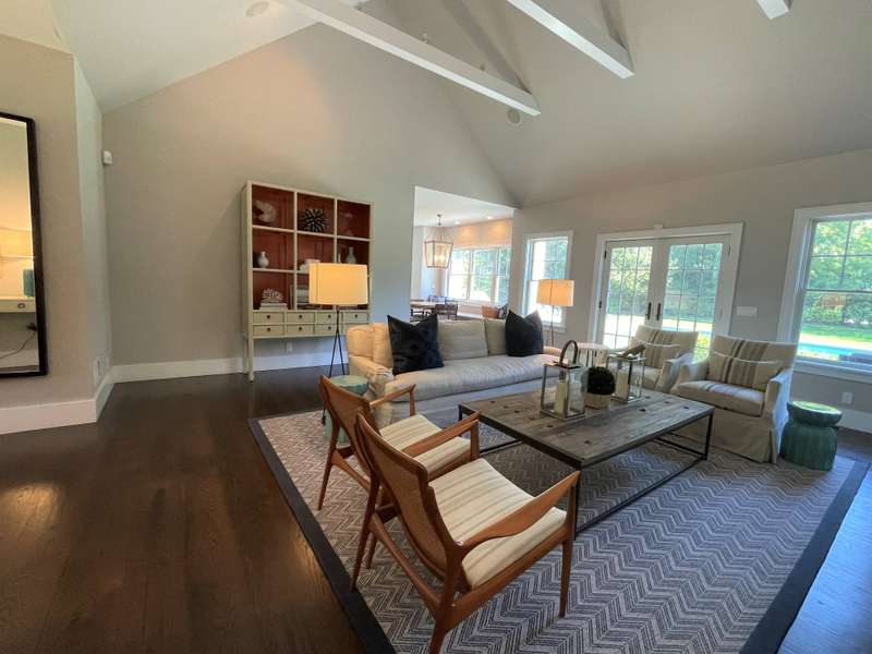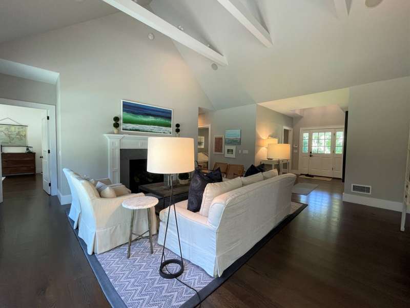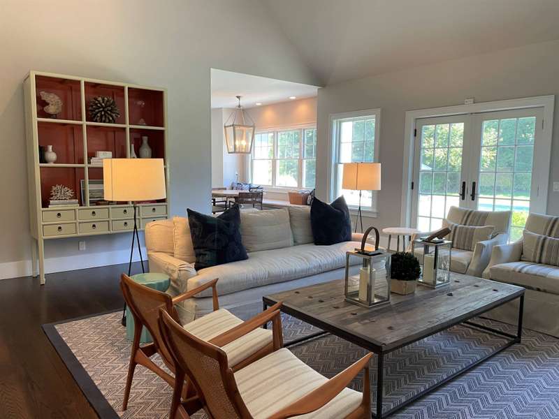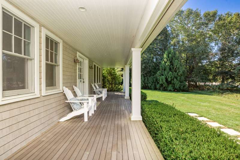 Rental Registration # 23-1,230 - Located within short distance to East Hampton village is this well-kept postmodern home. The home was built in 2013 by a Hampton top notch builder and offers five bedrooms and three-and-one half baths on just about 3,000 sq ft. of living space. Upon arriving at the property, you are welcomed by a classic front porch that leads to the entry hall where the high ceiling living room with fireplace overlooks the heated saltwater pool and manicured grounds. Additionally, the main floor includes a gourmet kitchen with marble countertops, stainless steel appliances, island, and breakfast nook, formal dining room with paneled wainscoting, den/TV room, powder room, two guest bedrooms, and a Jack-n-Jill bathroom. On the opposite side is the primary suite with walk-in-closet and bath with double stone vanity. The 12-foot lower level is finished with two additional bedrooms, full bath, and rec-room. Additional amenities include outdoor shower, central-air-conditioning, heated pool, and a two-car garage. Come experience the summer of a lifetime.