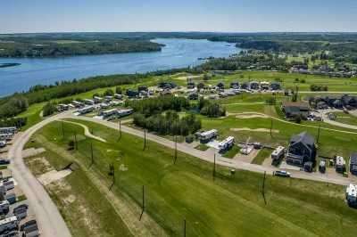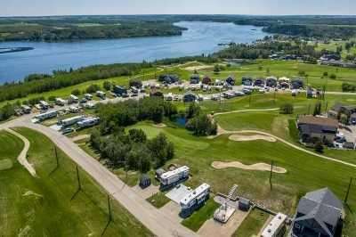 Price Adjusted! Enjoy life at the lake at this 4 Season Gated community located just 25 minutes East of Red Deer! This .08 acre lot is in Phase 6 of the Whispering Pines Golf and Country Club, and the community offers a quiet, peaceful spot to park any RV, trailer or park model, or have the option to build your year round home, with no building commitments. The location is second to none and offers a short walk to all the amenities. You will have the added benefit of storing your boat at the dock and walking to it within minutes. Benefits to this community include access to the restaurant, swimming pool and sauna, laundry facilities, full gym, private sandy beach, pickleball, beach volleyball, community fire pits, and of course the 18 hole golf course. The lot includes a newer concrete pad and is ready for you to pull up, set up and enjoy the carefree lifestyle Whispering Pines has to offer. While enjoying your time you will never have to worry about cutting grass or shovelling snow. Whether you come out just on the weekends or spend months at a time you will not be disappointed. Municipal water, sewer, and natural gas are available at each lot. Come out and see for yourself everything this great community has to offer.