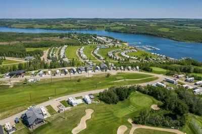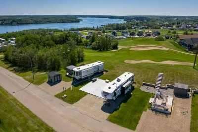 Price Adjusted! Enjoy life at the lake at this 4 Season Gated community located just 25 minutes East of Red Deer! This .08 acre lot is in Phase 6 of the Whispering Pines Golf and Country Club, and the community offers a quiet, peaceful spot to park any RV, trailer or park model, or have the option to build your year round home, with no building commitments. The location is second to none and offers a short walk to all the amenities. You will have the added benefit of storing your boat at the dock and walking to it within minutes. Benefits to this community include access to the restaurant, swimming pool and sauna, laundry facilities, full gym, private sandy beach, pickleball, beach volleyball, community fire pits, and of course the 18 hole golf course. The lot includes a newer concrete pad and is ready for you to pull up, set up and enjoy the carefree lifestyle Whispering Pines has to offer. While enjoying your time you will never have to worry about cutting grass or shovelling snow. Whether you come out just on the weekends or spend months at a time you will not be disappointed. Municipal water, sewer, and natural gas are available at each lot. Come out and see for yourself everything this great community has to offer.