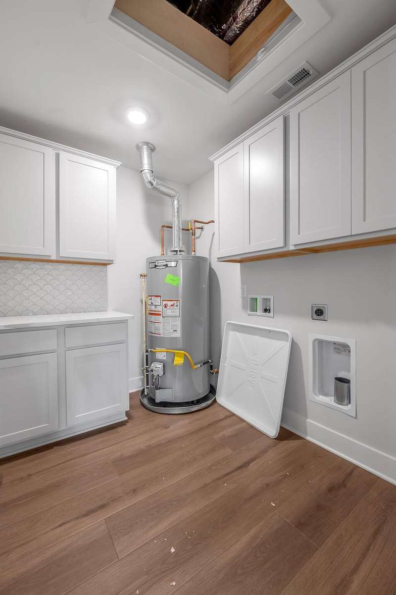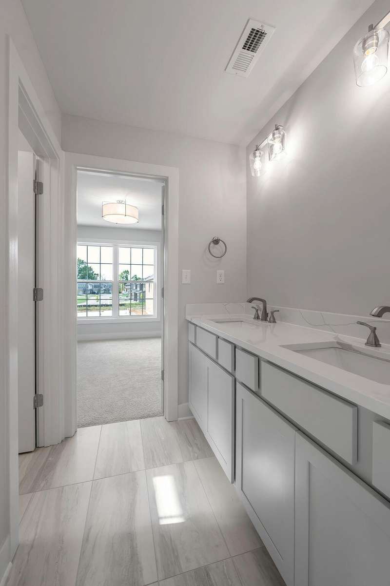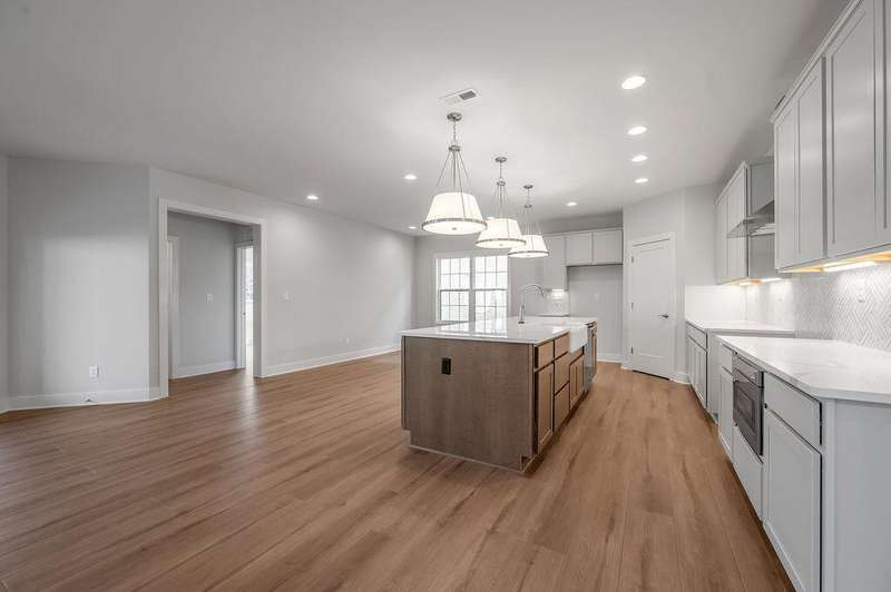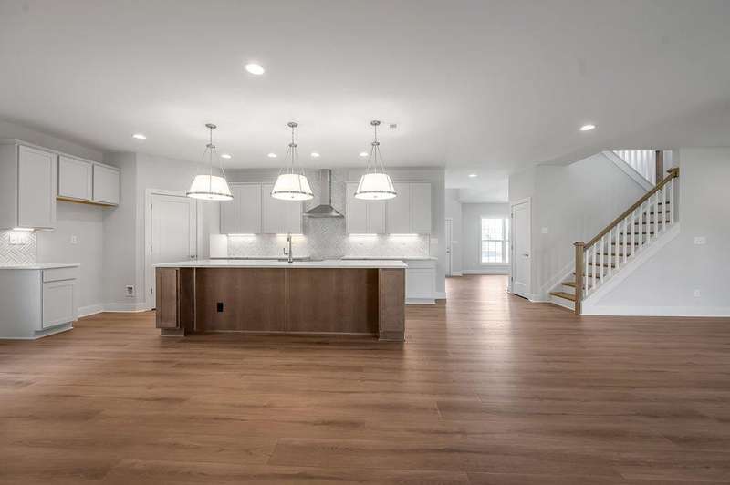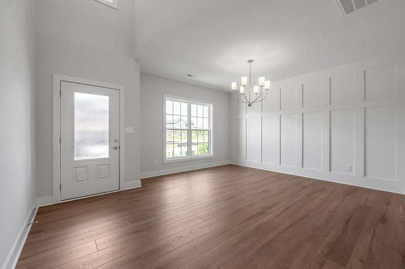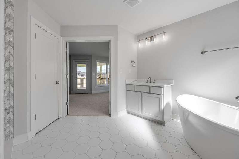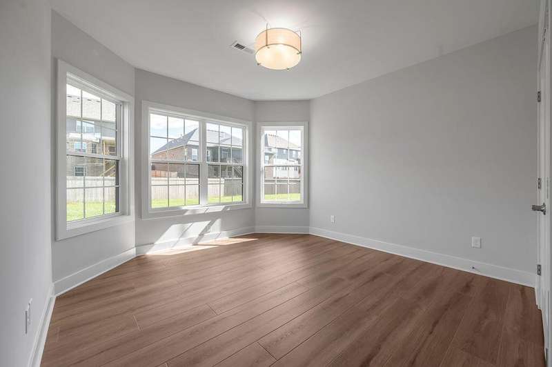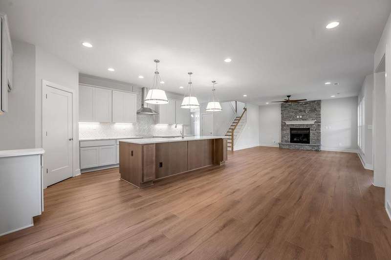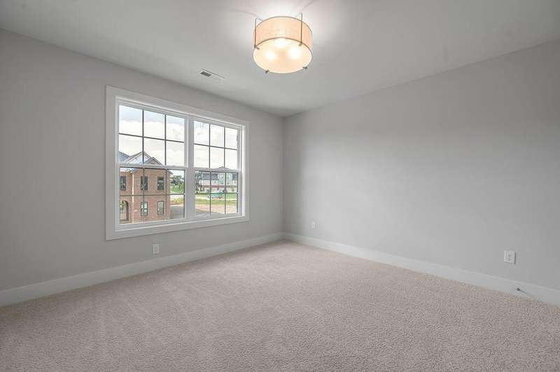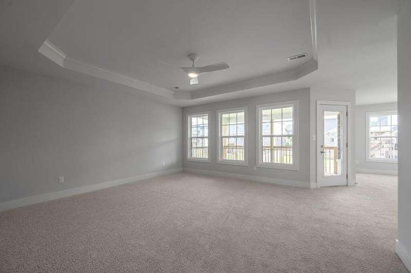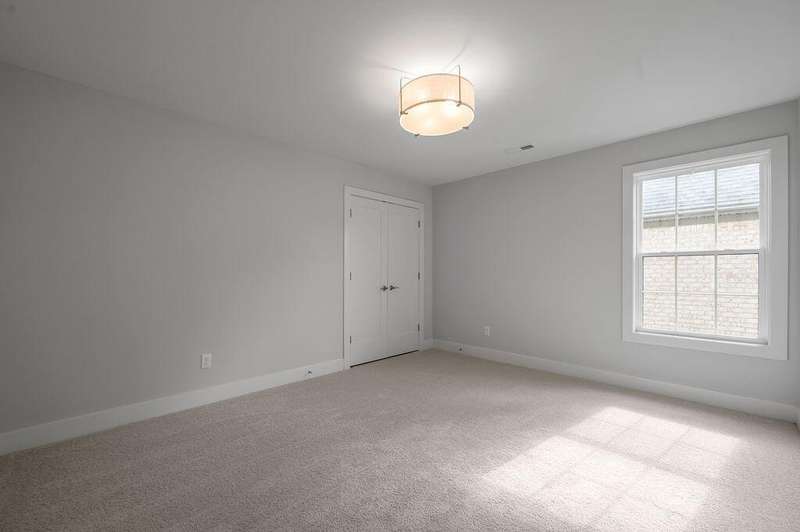 Home is currently at Drywall/Trim Phase. The Albany is a spacious two-story plan that makes great use of available square footage, including a luxurious primary bedroom suite, and includes a two-story covered patio/deck. It also foregoes the formal living room in favor of a flex area and has a spacious fifth bedroom and full bath, and a covered patio. A two-story foyer creates an open entry, and the very open layout of the family room, kitchen, and breakfast area create a large, shared living space. Nine-foot ceilings are standard on the first floor. The family room adjoins the covered patio, and the first floor fifth bedroom is located at the rear of the home. The upstairs primary bedroom suite is accessed by double doors, and includes a tray ceiling in the bedroom, a private sitting room, private access to a spacious covered deck, a room-sized closet, and luxury bath with garden tub, separate shower, separate vanities, and enclosed commode area. A spacious upstairs hall opens to three more bedrooms, two of which share a bath, and to the home's third full bath, utility room, and second linen closet.. The exterior elevation offers a covered entry and a multi-layered hip-and gable roof design, incorporating both brick and shake siding on the front of the home.