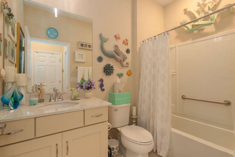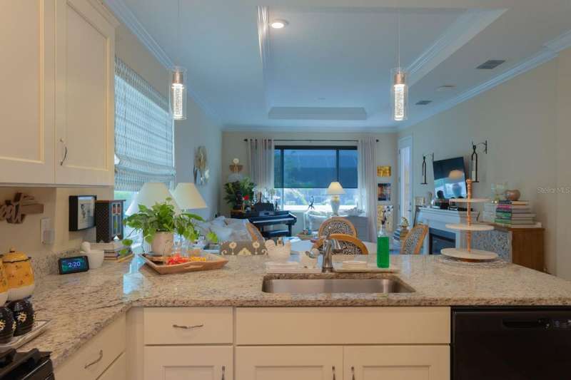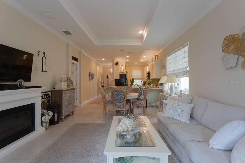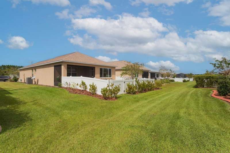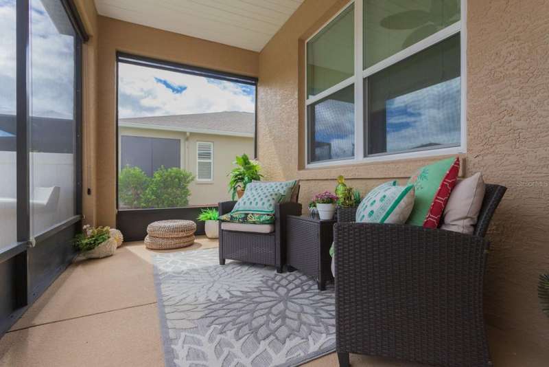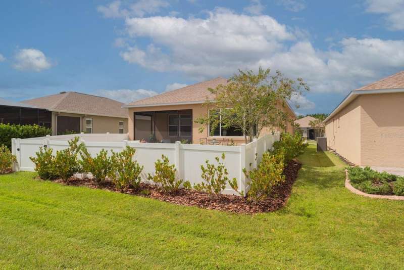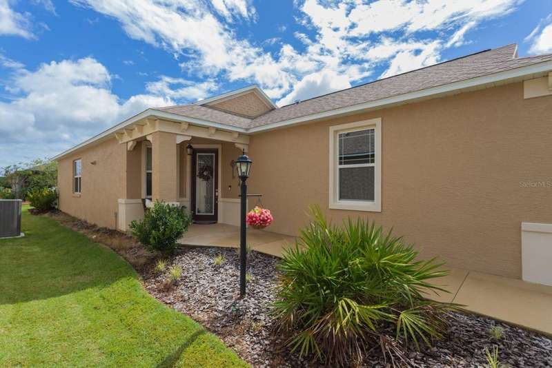 Rare Find one of the last Elon's built in On Top of the World. Beautifully upgraded home in Weybourne Landing available now. As you enter this lovely cottage home you will notice the upgraded front door and how large the home feels. High 9'-4 ceilings throughout the home with tray ceilings in the great room and the primary bedroom and crown molding from the entry to the lanai. The kitchen layout is a cooks dream with a Natural Gas stove, and it is beautifully appointed with upgraded wood cabinets with crown molding and under/over cabinet lighting. With granite counter the kitchen also has a separate breakfast nook area with a window looking over the entry. The open floor plan allows for easy interaction from the kitchen through the dining area into the living room. Great for entertaining. You will find tile floors throughout the main living areas, kitchen and bathrooms with cozy carpet in the bedrooms. The primary suite has an upgraded bathroom with double sinks in quartz counters and ceramic tiled walk-in shower. The screened in Lanai has custom Solar shades and leads out to the extended paver patio surrounded by mature landscaping and a vinyl fence, a real backyard oasis. The home has inside laundry with full size stackable washer and gas dryer. The 2-car garage has an epoxy floor and garage door opener. It is completed with a 2nd bedroom and bath you'll be proud to have your guest stay in. This home has smart home features available. Don't miss seeing this beautiful home. Call to schedule your showing today.