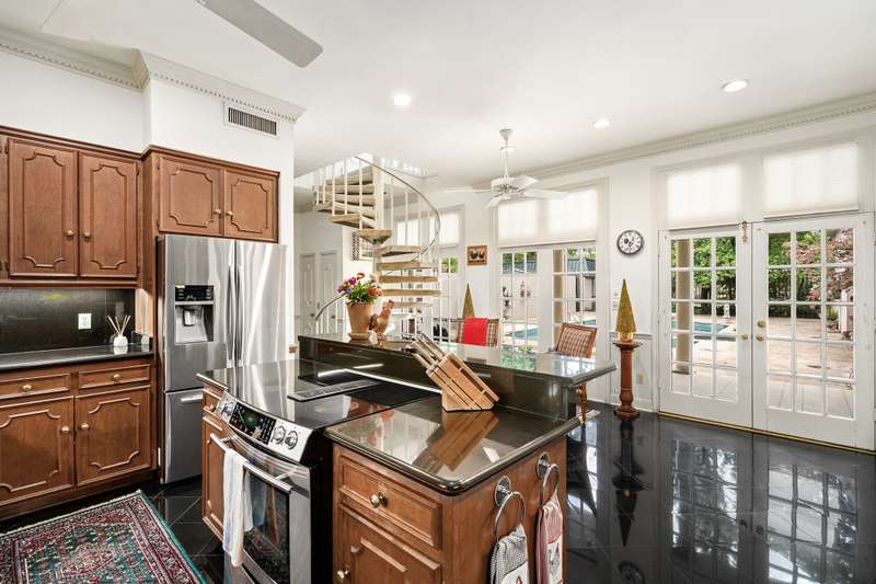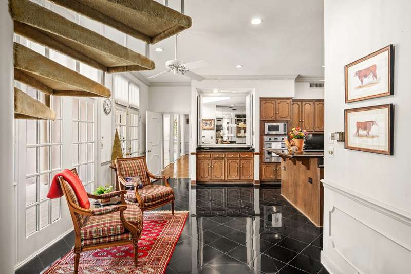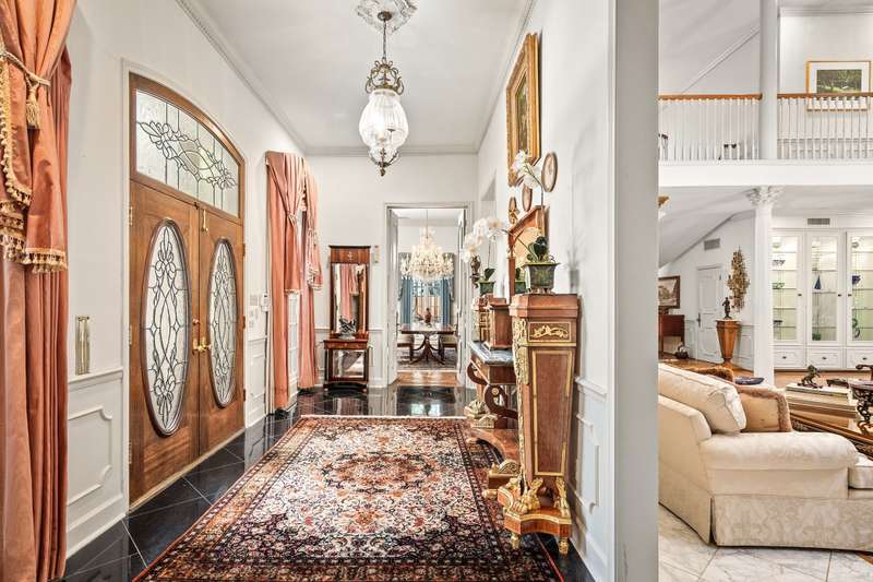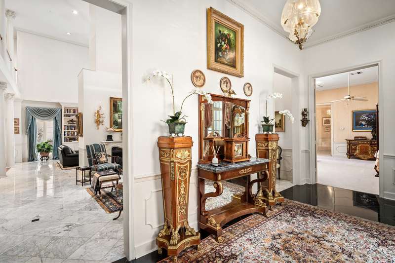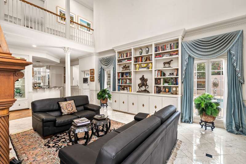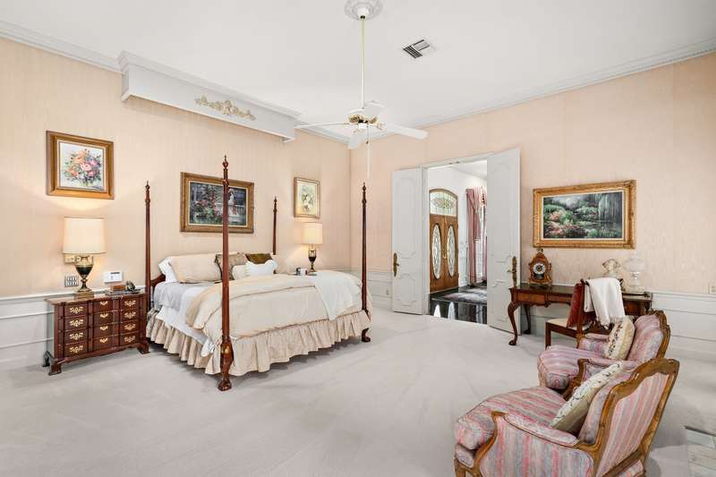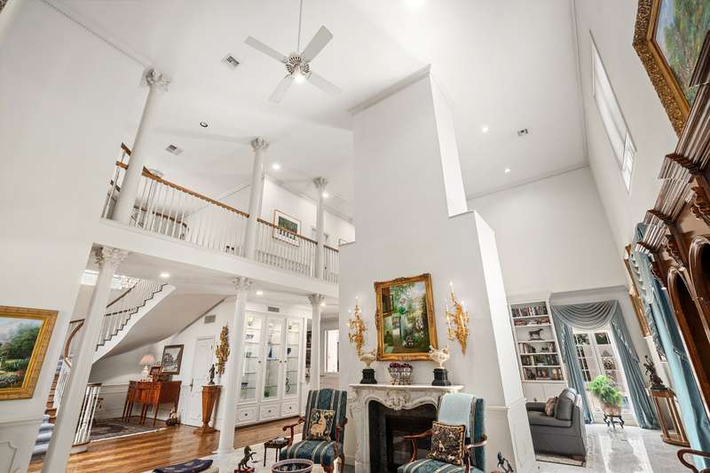 Stately, two story traditional home on a large 26,350 sqft (per HCAD) lot, ready for transformation. Expansive primary bedroom down with dual bathroom and closets. Formals, den, wet bar/butler's pantry, wine room with storage closet. Kitchen area has a large walk in pantry, utility room, desk area and room for a dining table. Two staircases. Three bedrooms up, all with ensuite baths. Large game room (4th bedroom) up. Extra room up, could be home office/study. Swimming pool. Two driveways, enter and exit on Rocky River or Sage Rd. Parking court, 2 car garage, 2 car carport, extra parking. Private courtyards. Being sold in present condition. No repairs will be done. This is an opportunity to customize or create your dream home. All info per seller