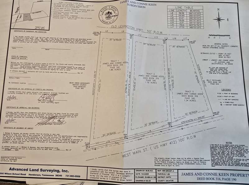1.34 Acre Commercial Lot in the City of Parsons! Located on busy HWY 412 W/West Main St, this property has approximately 200 feet of HWY 412 frontage and 105 feet of Old Lexington HWY frontage-shown as Tract 3 on the survey. All city services available. Also available is Tract 1 containing 1.86 acres. Zoned commercially with excellent visibility & accessibility, this is a unique offering in the busy little Southern TN River Town of Parsons. Located 15 mins to I-40 between Memphis & Nashville and 5 miles to the Tennessee River!