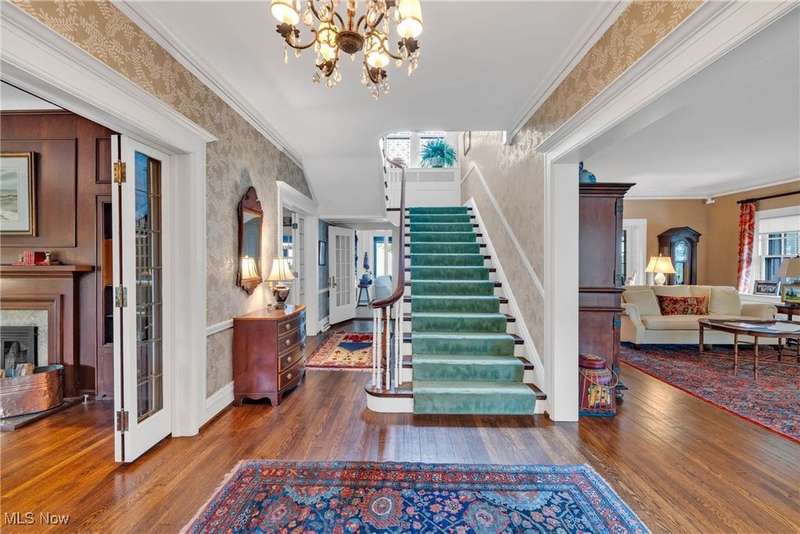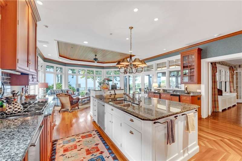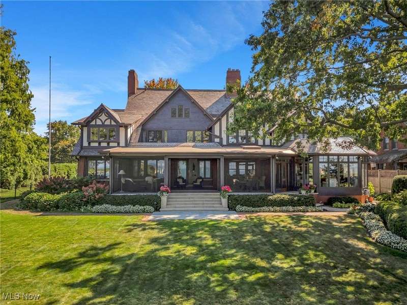 Welcome to this landmark lakefront residence in the heart of Lakewood's Clifton Park neighborhood. Situated on just under 1 acre and built in 1921, this timeless 6-bed, 4.5 bath, Colonial seamlessly blends historic charm with modern comfort. Classic architectural details throughout, hardwood floors, rich millwork, folding French doors, coved ceilings, and exceptional craftsmanship. The formal living room features a beautiful fireplace, while the elegant dining room also includes a fireplace. A den offers custom-built-ins, fireplace, and warm woodwork. The kitchen has a large center island, professional-grade appliances, double ovens, a warming drawer, 2 dishwashers, a bev. fridge, and ice maker. The breakfast nook offers panoramic views and and intricate ceiling detail. Designed for effortless indoor-outdoor living, the expansive screened and covered porch, complete with Phantom screens, provides breathtaking year-round views of Lake Erie and connects seamlessly to a sunroom. The layout creates a perfect flow for entertaining or relaxing. The yard is filled with whimsical plantings, a pergola, peaceful pathways, and space to enjoy the calming Lake Erie breezes and sunsets. Upstairs, the primary suite is a true retreat. It features a spa-like ensuite bath, a sitting room with a cozy fireplace, a walk-in closet, a private balcony, and stunning lake views. Bedroom two includes an updated ensuite bath with dual vanities, while 2 additional bedrooms are serviced by a hall bath. A convenient 2nd floor laundry room adds to everyday ease. The 3rd floor provides flexible living space with a large rec. room, plus 2 more bedrooms and a full bath. Additional highlights include two staircases and an attached garage that opens into a versatile mudroom/office space, which serves as the hub of household organization. This is a rare opportunity to own a truly iconic home in one of Lakewood's most special lakefront communities, complete with a private beach and community amenities.
