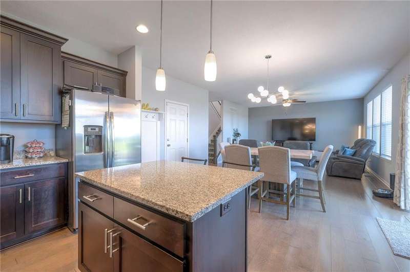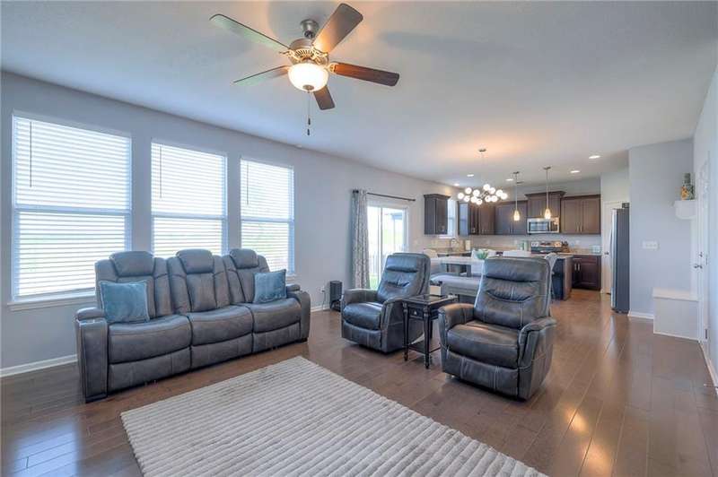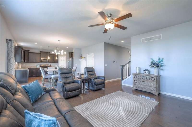 Welcome to 4828 SW Beckham Drive, a meticulously maintained 2-story in the highly desirable Kensington Farms subdivision of Lees Summit. Built in 2018, this 4-bedroom, 2.5-bath home offers over 2,000 sq. ft. of finished space and lives like newbut without the price tag of new construction.From the moment you arrive, youll appreciate the thoughtful upgrades: high-traffic carpet for lasting durability, custom woodwork at the garage entry, an in-ground sprinkler system, double vanities in both upstairs baths, and extra storage space in the garage. The basement is stubbed for a future full bath, giving you room to grow, and the whole-home humidifier and ultra-quiet garage door opener add year-round comfort and convenience.Inside, the main level features hardwood floors throughout, a freshly repainted interior, and an open floor plan perfect for entertaining. The kitchen boasts a large island for meal prep or casual dining, a walk-in pantry, and generous cabinet and counter space. All kitchen appliances stayplus the washer and dryermaking your move truly seamless. Upstairs, all bedrooms have updated ceiling fans, and the primary suite offers a private retreat with dual vanities. The backyard is fully fenced, ideal for pets or play, and the ADT-ready security system gives peace of mind.Living in Kensington Farms means access to neighborhood green space, a community pool, and sidewalks perfect for evening strolls. Youre minutes from Longview Lake, and some of the areas best dining and shoppingincluding Downtown Lees Summit, and local favorites like 3rd St Social and Martin City Brewing. Commuters will love the quick access to 50 Highway, I-470, and 291.Best of all, this home has been pre-inspected, so you can buy with confidence knowing its truly move-in ready. All appliances including the washer & dryer stay with the home. Simply bring your furniture, hang your art, and start enjoying everything this exceptional home and community have to offer.