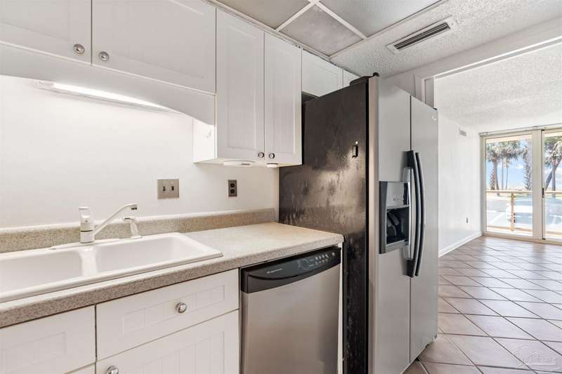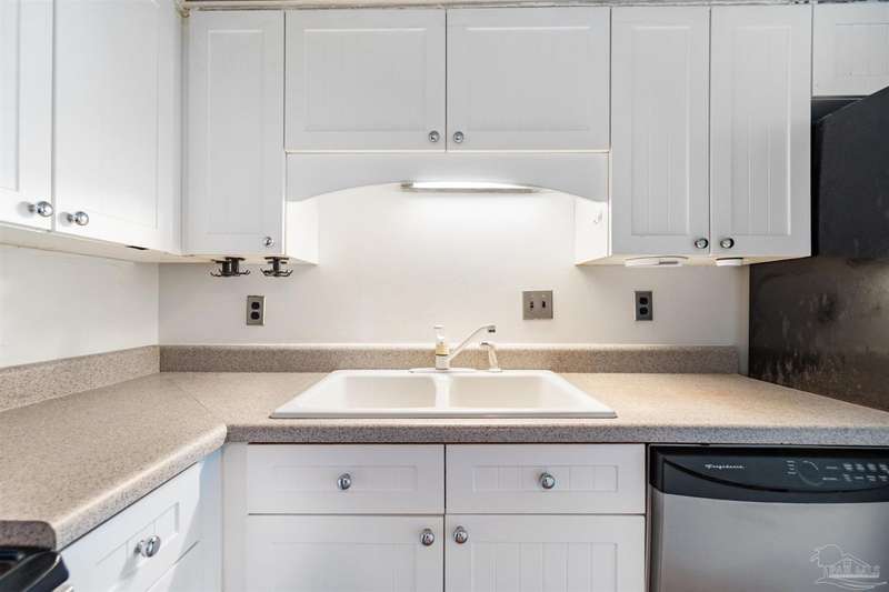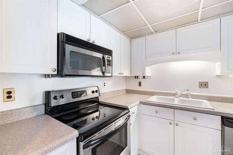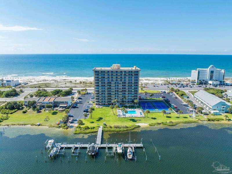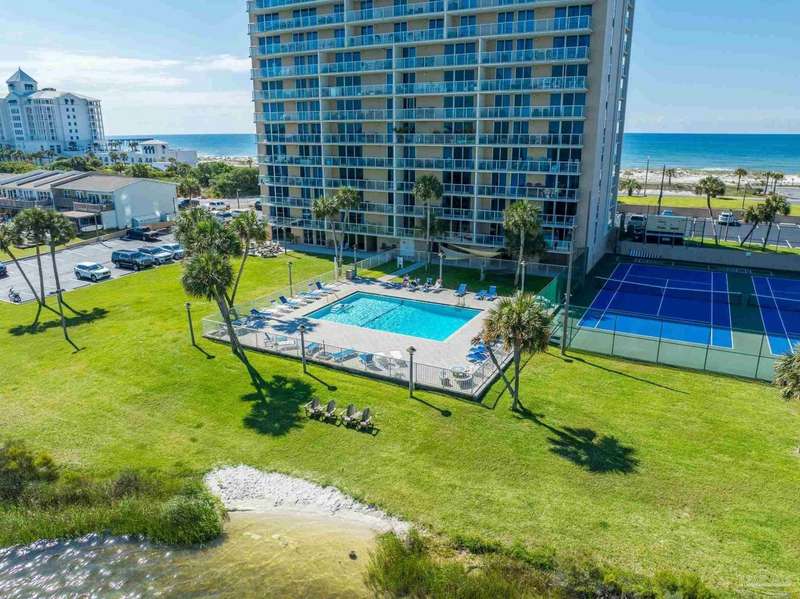 BEST PRICE and LOCATION on Pensacola Beach! This first floor unit has been freshly painted and consists of 1 bedroom and 1 bathroom with a walk-in closet, efficient kitchen with oven, dishwasher, and refrigerator, storage closet, a large balcony with access from the living room and bedroom and views of the Gulf. This is a perfect location to watch the Blue Angel Airshow, walk or ride bikes to all the fun including Bands on the Beach, the fishing pier, shopping and dining. Sabine Yacht and Racquet club is a great place to call home or use as an investment property. The amenities include a pool, boat dock(lease separately), a community room, a gym, on-site laundry, elevators, and tennis/pickleball courts. Come see for yourself and make this one yours today!