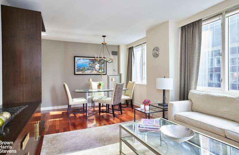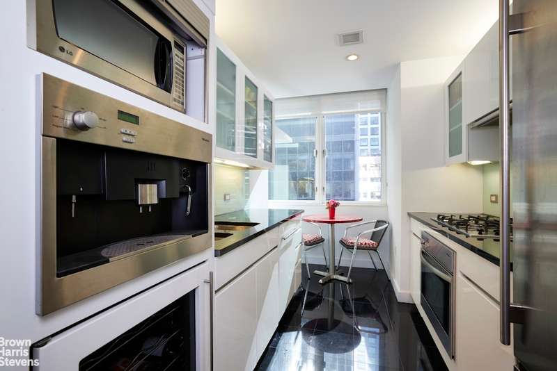 Just Listed to Rent - Park Avenue Place! This well designed oversized one bedroom 940sf Condo on E 55th street midway between Park & Madison Avenues, with access to all that Manhattan has to offer - A vibrant and convenient location enhanced by the luxury of a fine condominium building making it the perfect primary residence or a pied-a-terre. Sunny north & east facing and in pristine condition. A formal entry foyer, custom built-in in living-room. The windowed eat-in kitchen, with absolute black granite floors and counters with white Lacquer cabinets, highlighted by a Sub Zero refrigerator, Miele stove top, oven, coffee bar, dishwasher and a wine refrigerator. And floor to ceiling windows. The spacious bedroom accommodates a king size bed. A double wide enormous closet and additional double wide closet in the hall. The luxurious 5 fixture marble bathroom includes a soaking tub, separate glass enclosed stall shower, heated towel bar and double sinks and custom vanity. A washer and dryer in the foyer with an entry closet for coats. In addition to all of this the building has a well-appointed fitness room and live in resident manager, and 24 hour doorman.