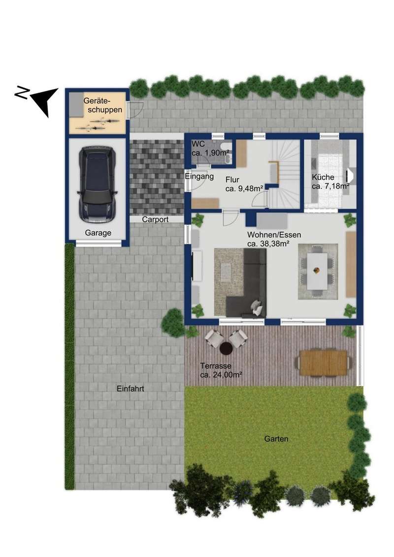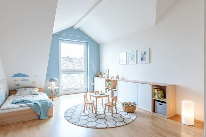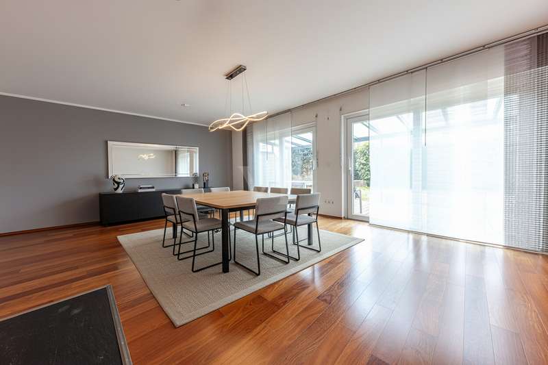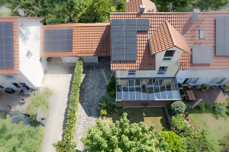 Welcome to your new family home. A home full of light, spacious areas and lovingly designed accents that combines contemporary living comfort with energy-efficient sustainability. Here you will find everything you need for a balanced family life - a place where precious memories can be created. The first floor features an elegant, open-plan living and dining area with high-quality real wood veneer parquet flooring and an inviting wood-burning stove, creating an atmosphere of style and cozy warmth. In this lively center of the house, people play, talk, enjoy and relax. Large sliding glass doors provide access to a covered terrace with a stylish glass roof and electrically adjustable awnings - perfect for cheerful barbecue evenings or quiet moments outdoors. A spacious family bathroom with a walk-in shower, bathtub and two washbasins welcomes you on the upper floor, ensuring a relaxed start to every morning. There are also two children's bedrooms on this level, each offering a safe place for imagination, play and security. An additional room serves as a quiet zone for concentrated work, inspiring reading or creative ideas. Here too, the clever interior design ensures a bright and friendly living atmosphere. The master bedroom and another children's room are located on the top floor, where the interplay of light and gentle sloping ceilings transform them into real feel-good spaces. They offer ideal conditions for creative pursuits, focused study or soothing rest. A private bathroom rounds off the comfort on this floor and makes the morning routine noticeably easier. The basement has a spacious hobby room that can be flexibly adapted to your wishes. Whether a play area, home cinema, fitness room or studio - everyone will find their own personal favorite spot here. This level is complemented by a practical storage room and a separate utility room in which the modern building services are discreetly housed. This residential ensemble is rounded off by a single garage, a carport and an additional outdoor parking space. An efficient heat pump in combination with a powerful photovoltaic system forms a future-oriented energy concept that protects both the environment and your budget and sustainably increases living comfort. This semi-detached house is far more than just a building. It is a place full of openness, security and light, where everyone finds their place and enriches family life in a special way.