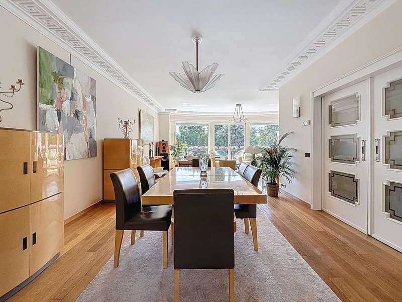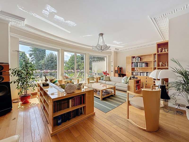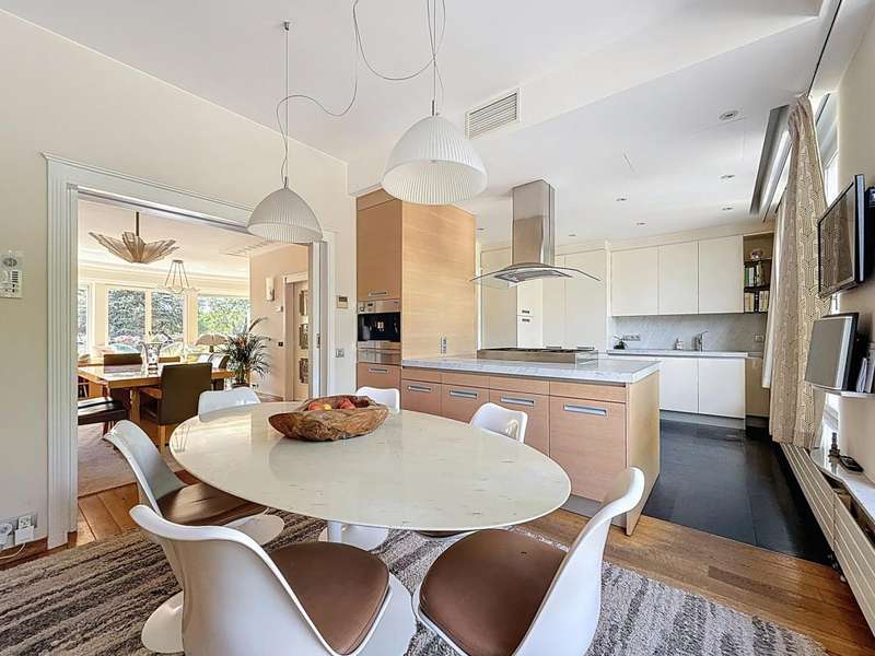 In the sought-after residential neighbourhood of Parc de Woluwe, this beautiful 1956 bel-étage house charms with its timeless appeal, generous proportions and ideal location, close to all amenities. Built on a plot of approximately 440 m², it offers a living area of ± 423 m² comprising superb light-filled reception rooms, oak parquet flooring, an elegant fireplace and a large, fully equipped kitchen with dining area. The sleeping area comprises six bedrooms, including several suites with en-suite bathrooms, offering comfort and privacy. Cellars, a laundry room, an attic and a spacious garage complete this functional and welcoming property. EPC: E A family home with authentic character, combining space, light and quality of life in one of the most sought-after neighbourhoods of Woluwe-Saint-Pierre.