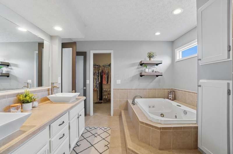 5 Star Cul-De-Sac Location in Hoover Crossing! Renovations galore with this 4-bedroom 2.5 bath two-story featuring 2,932 square feet, finished lower level with egress, first floor laundry, first floor home office, centralized kitchen with walk thru pantry, stainless steel appliances, island and ceramic tile backsplash! Tons of outdoor living space with a covered pergola, patio, hot tub, large shed and fully fenced yard! Upstairs the primary suite features vaulted ceilings, jacuzzi tub, walk in shower, walk in closet, double sinks and tons of natural light! The architectural detail is amazing! Highly walkable location! See A2A