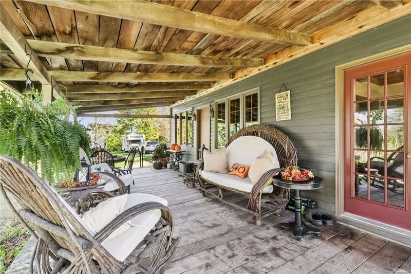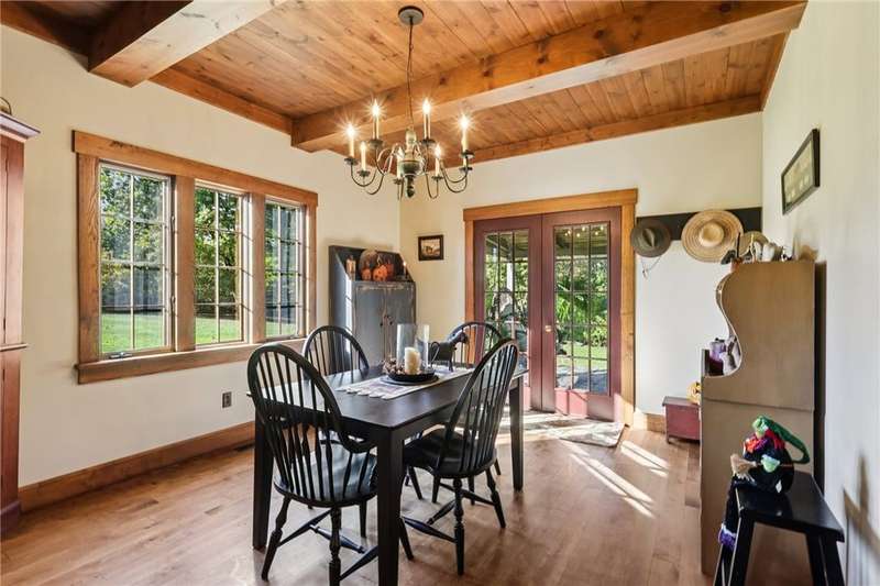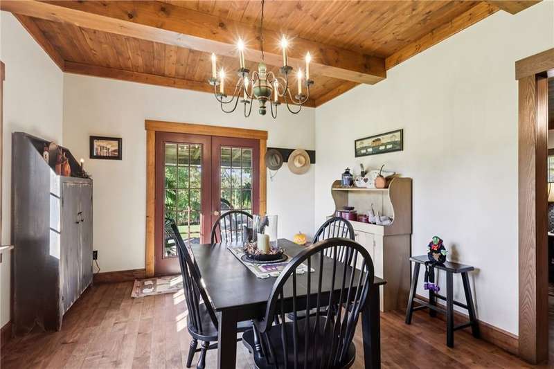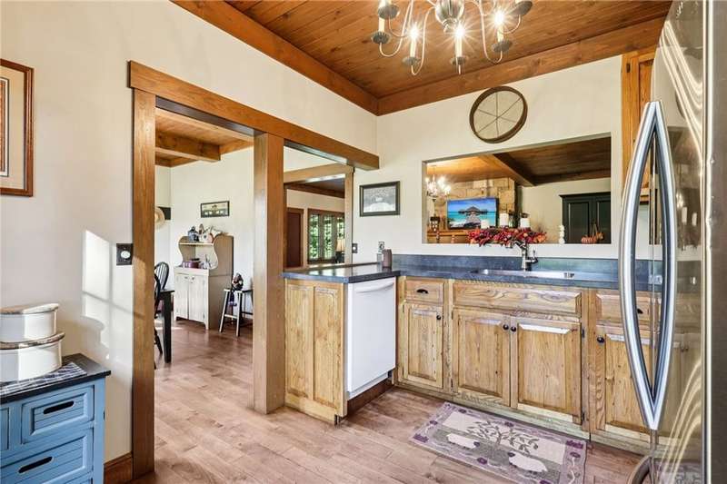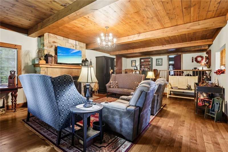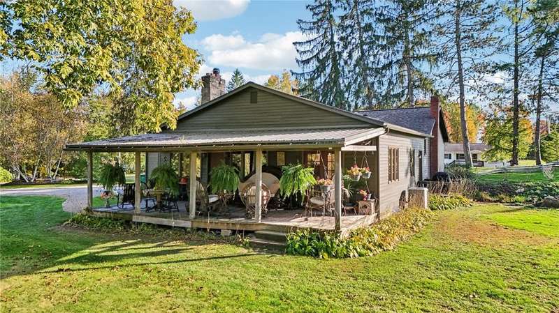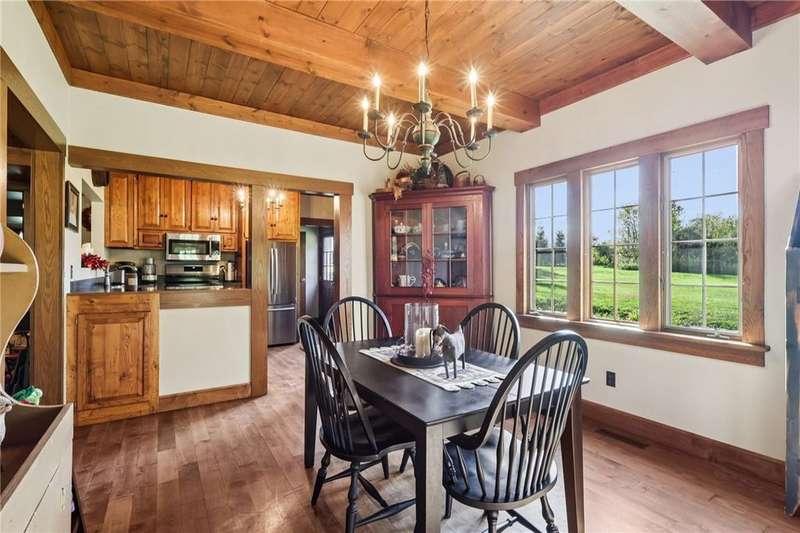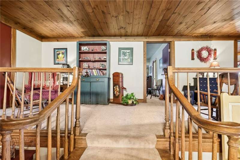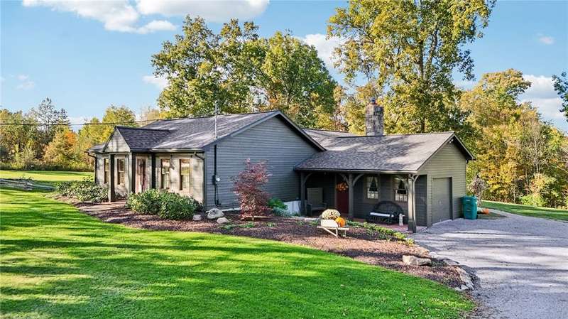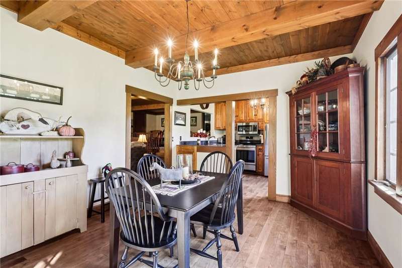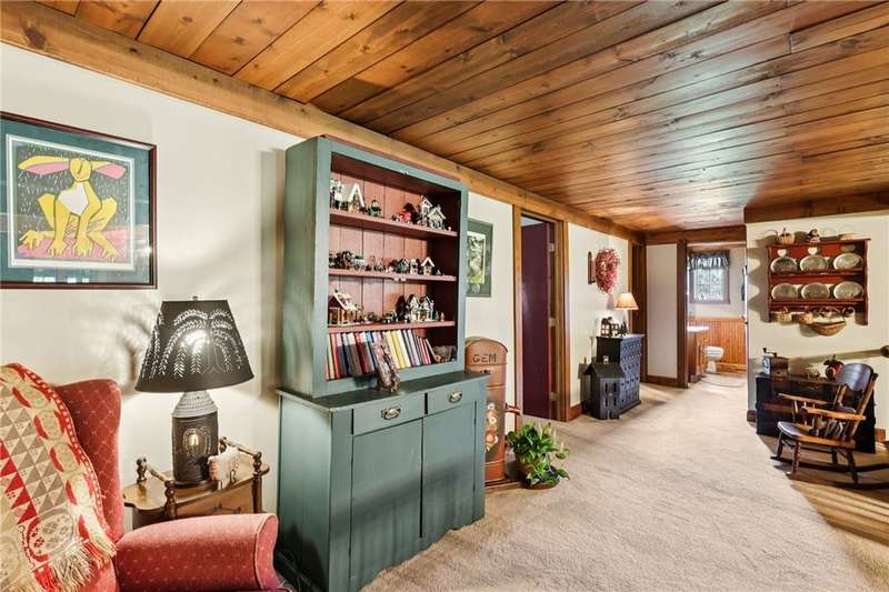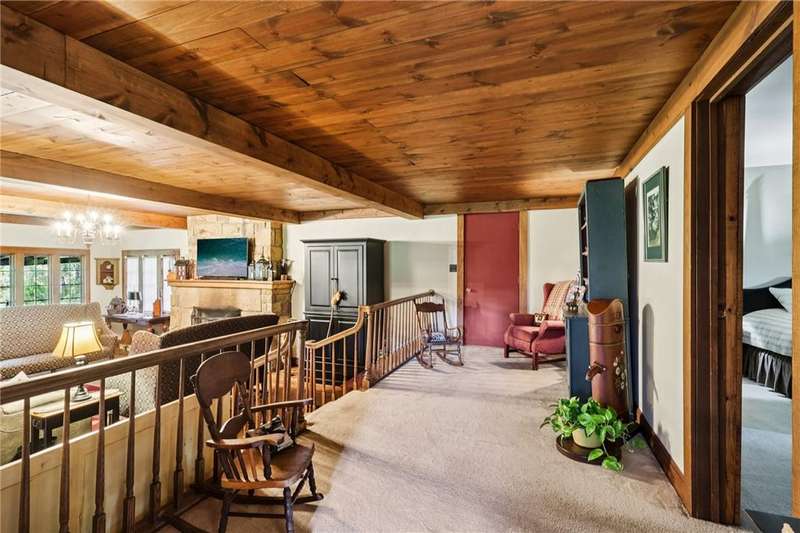 Nestled in the heart of Amish Country, this primitive ranch blends rustic heritage with timeless craftsmanship. The exterior is clad in resilient cedar and Hardie Board siding and complimented by newer roof and windows. Interior is brimming with architectural distinction and character, showcasing a beautiful medley of woods: maple floors, sassafras jambs, wormy chestnut window trim, pine ceilings. The entertainment-friendly living room commands attention with its floor-to-ceiling fireplace, beamed ceiling, and warm rustic charm. An efficient, fully equipped kitchen features stainless appliances and opens into an intimate dining area. A few steps lead to the loft level, which overlooks the living room and accesses garage, powder room, bedrooms and baths. Owner's suite offers an oversized walk-in closet designed for organization, while both bedrooms enjoy easy access to a full bath. Immaculate and truly one-of-a-kind, this home captures a unique primitive flair wrapped in modern comfort!
