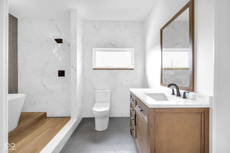 Welcome home! This stunning 4 bed, 3.5 bath double corner lot home located in the booming Old Southside has been thoughtfully remodeled down to the studs and is ready for you to call home. Just 5 minutes south of downtown Indianapolis and a quick hop to Garfield Park, you are minutes from everything Indy has to offer. Walk in and you are instantly greeted with a grand staircase, soaring ceilings, and endless natural light. The parquet floors in your front living space mixed with the original extra large pocket door gives you all of the originality of this 1900's home mixed with modern updates. With approximately 3,500 of finished square footage AND a partially finished attic ready for final touches, this home has no shortage of room to spread out. A fully finished basement with both indoor and separate outdoor access, dual laundry units, and a two story deck for skyline views - this gem is one you have to see in person!