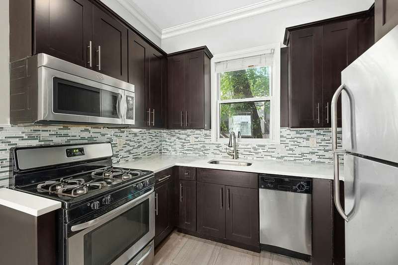 Enter this recently renovated duplex through the building's shared courtyard and step in the unit's living and dining space. The space is in conversation with the renovated kitchen which features stainless steel appliances and offers a sunny southern exposure. Off of the living room are two queen-sized bedrooms both with large closets. The bathroom features vanity storage and a tub.